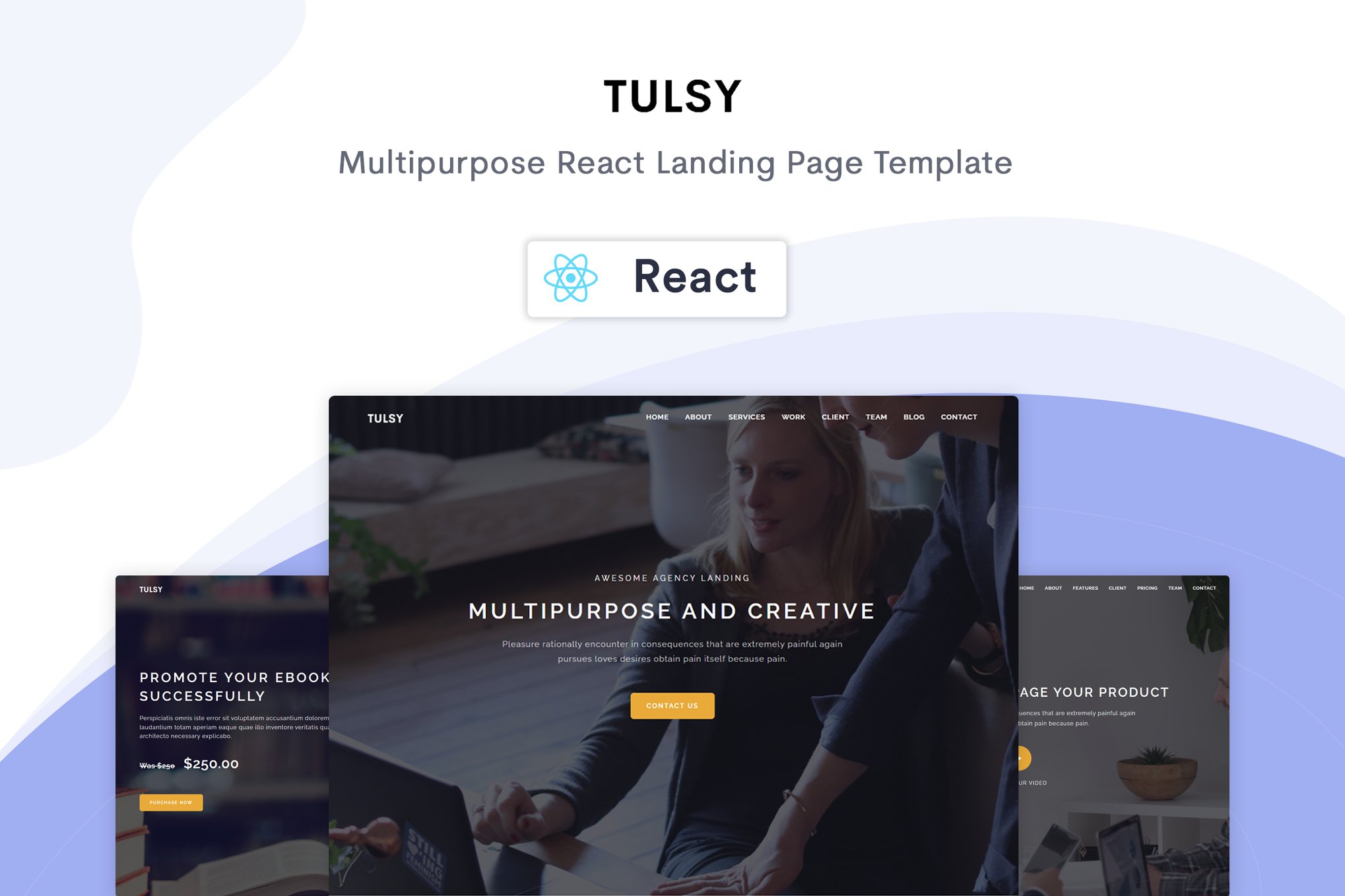 Tulsy is a versatile multipurpose landing page pack that is fully responsive and built on the powerful combination of Bootstrap v5.3.0 and React Js. This product offers a sleek and modern design perfect for promoting various businesses, agencies, startups, apps, books, or corporate websites. With features such as being built with the latest versions of React Js 18.2.0 and Bootstrap 5.1.3, Tulsy ensures a seamless user experience. The pack includes 11 multi-concept landing pages that are elegantly designed with clean lines and a touch of creativity. All Google Web Fonts are supported, enhancing design options for users. Tulsy is compatible with all major browsers and easy to customize, making it ideal for those looking to make a strong online impression. The available demos cover a wide range of industries, including agency, app landing, blog, book landing, business, construction, gym, interior design, photographer, software landing, and startup. Whether you are launching a new venture or refreshing your online presence, Tulsy provides the tools and flexibility to create a professional and engaging website.