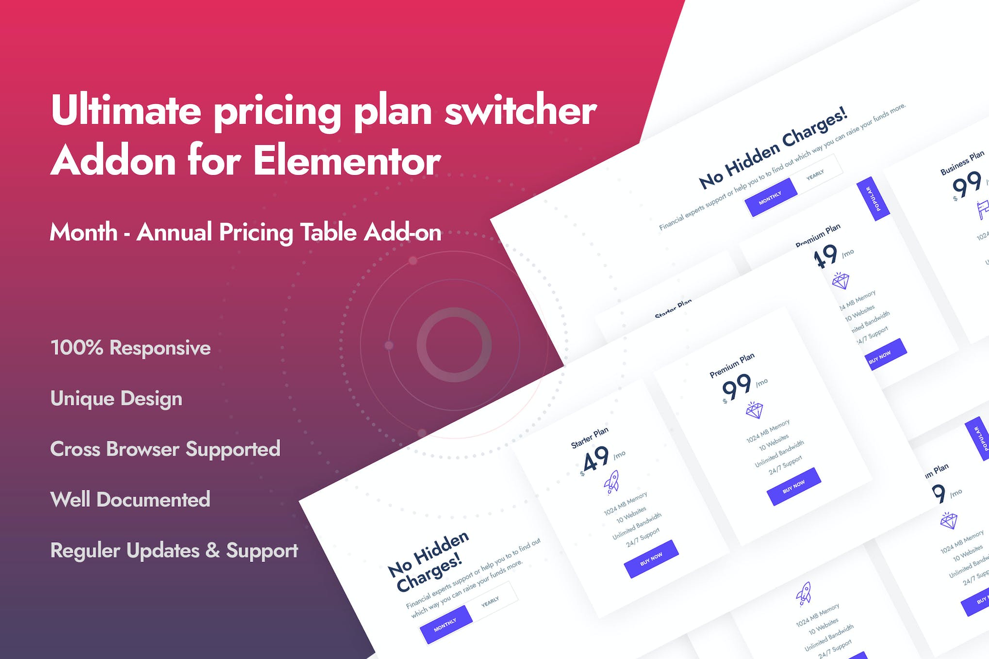 Introducing the Pricing Table Widget for Elementor Page Builder. With this widget, you can effortlessly create stunning month/year pricing plans that are both visually appealing and highly customizable. Featuring a clean and modern design, this add-on offers a variety of customization options including fonts, colors, borders, backgrounds, and more. Compatible with the latest version of WordPress, this widget is lightweight and fast, and works seamlessly on all major browsers. Rest assured, with our extensive documentation and free technical support, setting up and customizing your pricing tables has never been easier. Upgrade your website’s pricing display today with the Pricing Table Widget for Elementor.