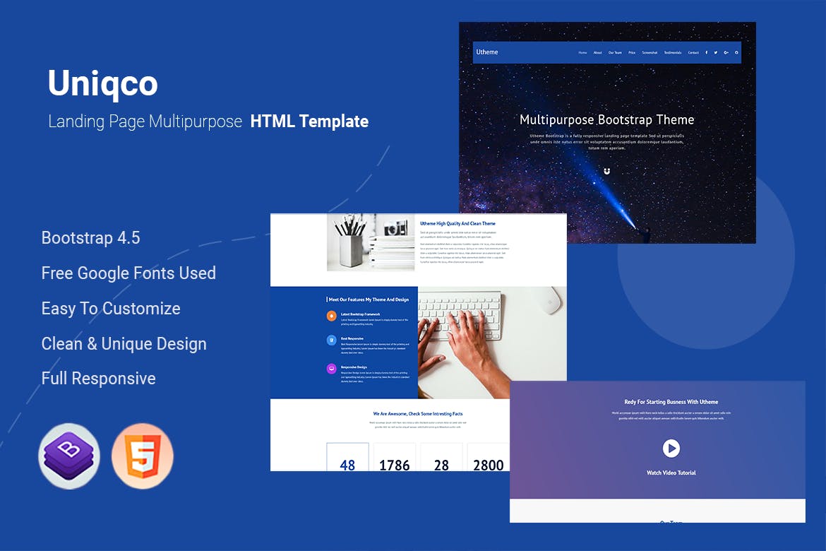 Uniqco – Multipurpose Landing Page Template is a versatile and modern design that will help you create stunning and functional landing pages for any type of website. With its clean and responsive layout, you can easily customize and personalize your page to suit your brand and capture the attention of your visitors. Whether you’re promoting a product, service, or event, Uniqco has got you covered with its intuitive features and user-friendly interface.