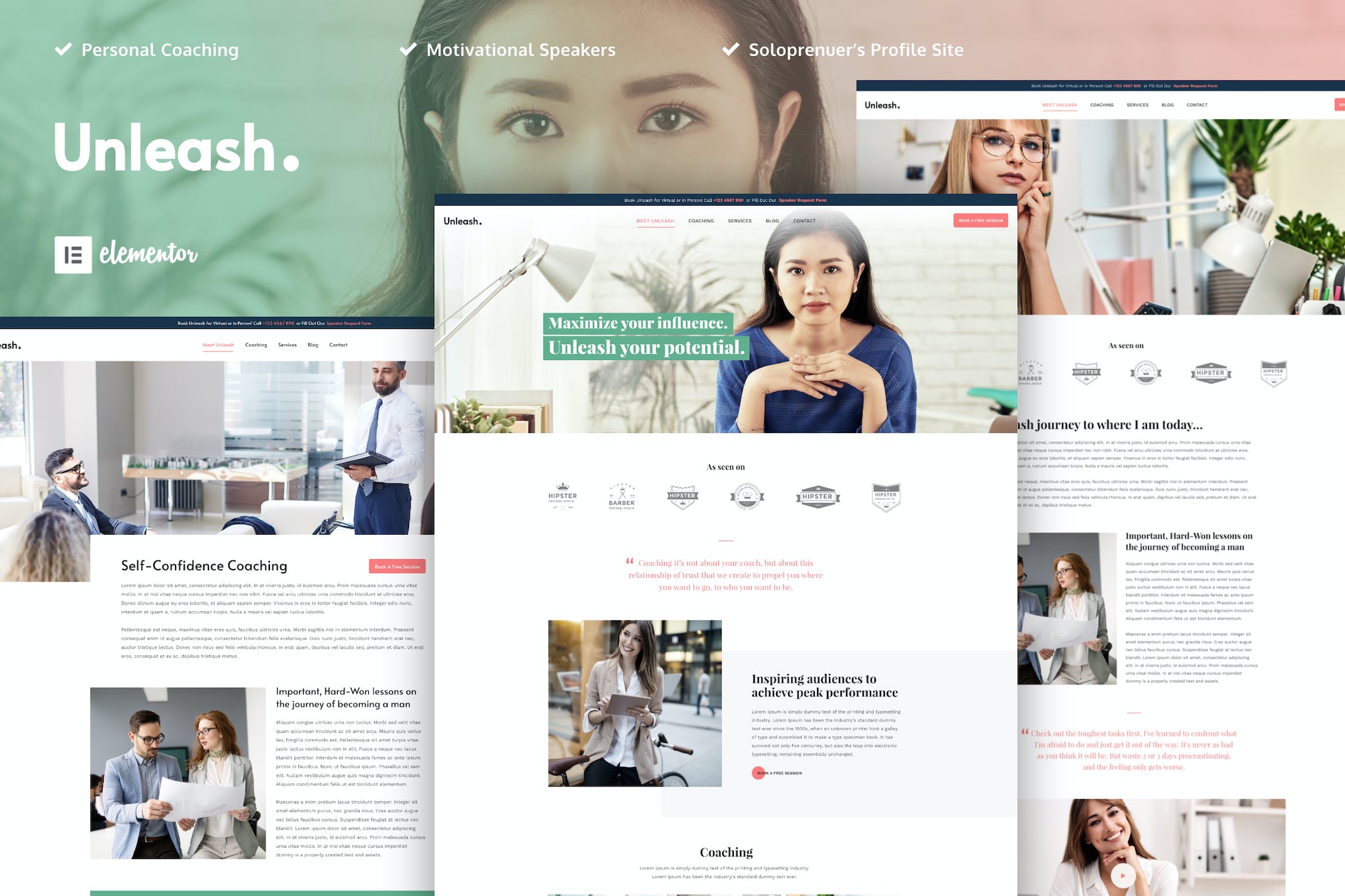 Introducing Unleash, a professionally designed Elementor Template Kit specifically created for coaching businesses. This fresh and feminine website template is meticulously crafted to ensure it looks stunning on any device. Say goodbye to coding – Unleash allows you to effortlessly build your website with its pixel-perfect design. Tailored for female coaches, it offers all the essential features needed to make your website a success, including home, about, coaching, services, blog, contact, FAQ, and 404 pages, as well as a stylish header, footer, and three additional blog templates. Unleash your potential today with this template kit.