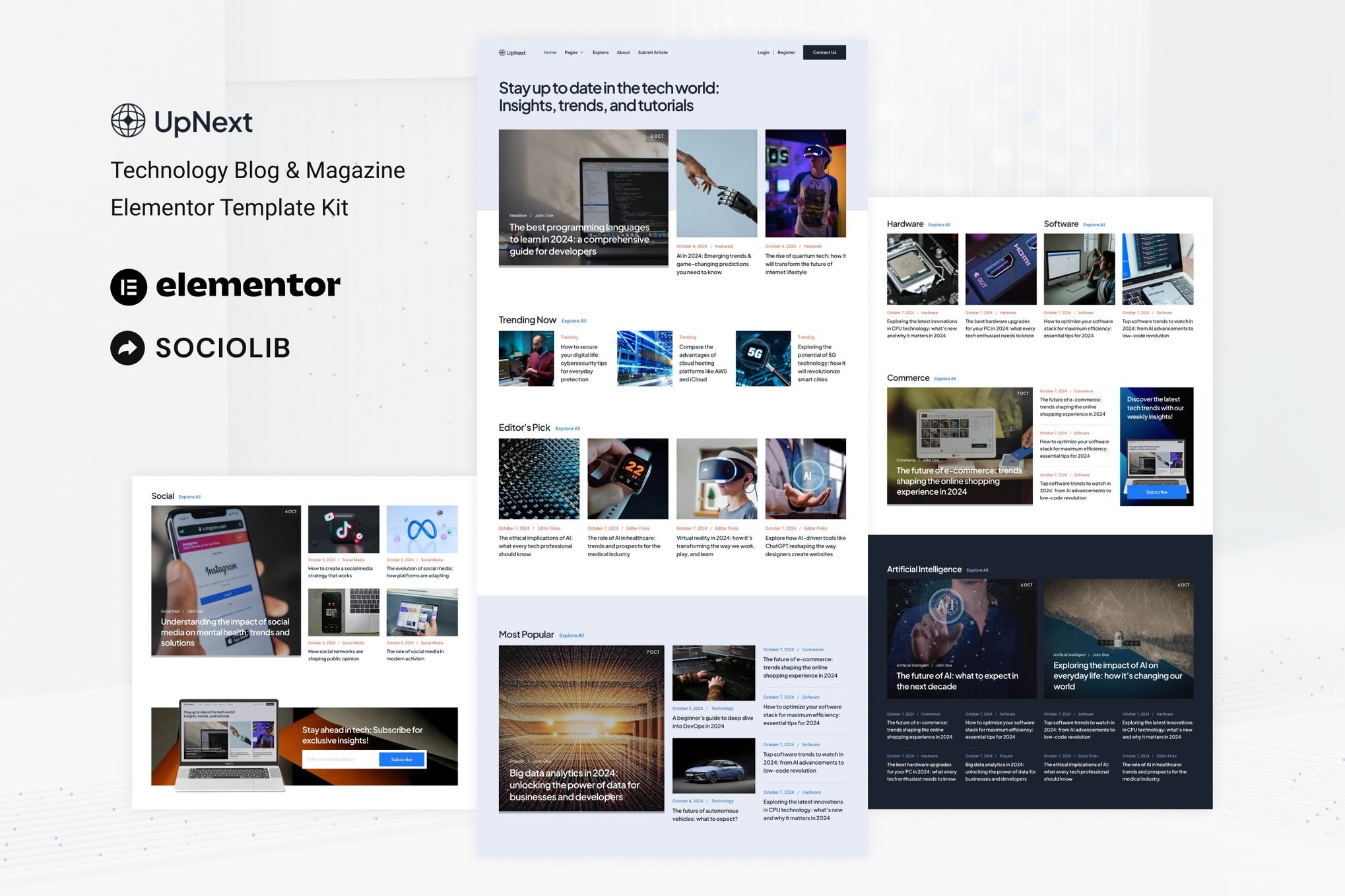 UpNext is a versatile Elementor Template Kit designed for effortlessly building Technology Blog & Magazine websites on WordPress. Ideal for various niches like Startup, Tech Reviews, News Portals, and more, this kit offers 13+ customizable templates and a user-friendly drag-and-drop builder for seamless design adjustments. The kit boasts a clean and modern design, ensuring fast-loading and responsiveness across devices. It comes with essential plugins for enhanced functionality and includes a detailed guide for easy installation. Elevate your website’s aesthetics with UpNext and captivate your audience with its stylish web design elements.