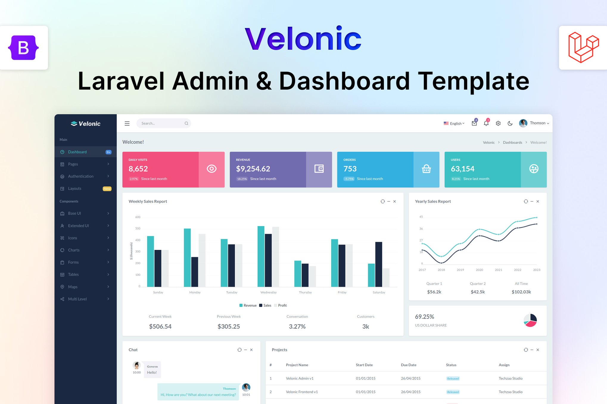 Download Velonic – a premium admin template that combines the power of Bootstrap 5.3.0 and Laravel 11 to deliver a sleek and efficient web solution. With a modern design and user-friendly interface, Velonic offers an array of hand-crafted components ready for immediate use. Its responsive nature and easy customization make it a developer’s dream, offering endless possibilities to create dynamic web applications. Whether you’re building a crypto platform, email system, or coming soon page, Velonic’s versatility shines through. Explore various templates, from admin to landing pages, tailored to streamline your backend operations effortlessly. Dive into a world of 80+ pages, 400+ UI components, and an array of layout features, all documented for your convenience. Elevate your project with Velonic today!