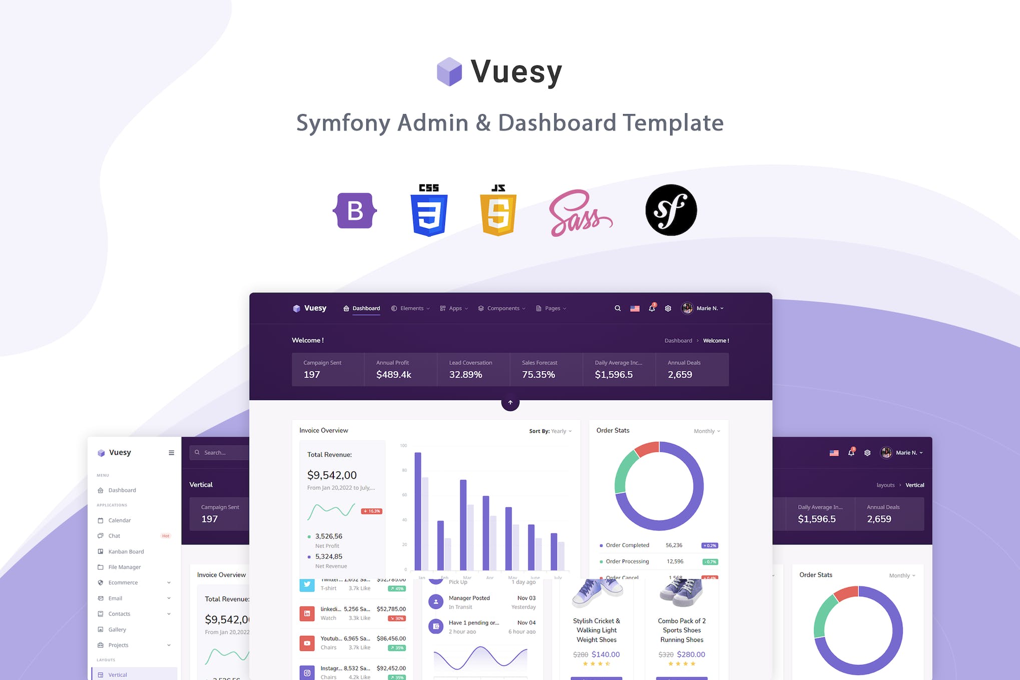 Vuesy is a sleek and modern admin and dashboard template built with Symfony, a highly popular PHP framework. With its clean design and user-friendly interface, Vuesy allows you to effortlessly manage and monitor your website or application. Packed with powerful features and customizable components, it is the perfect toolkit for creating professional and efficient admin panels.