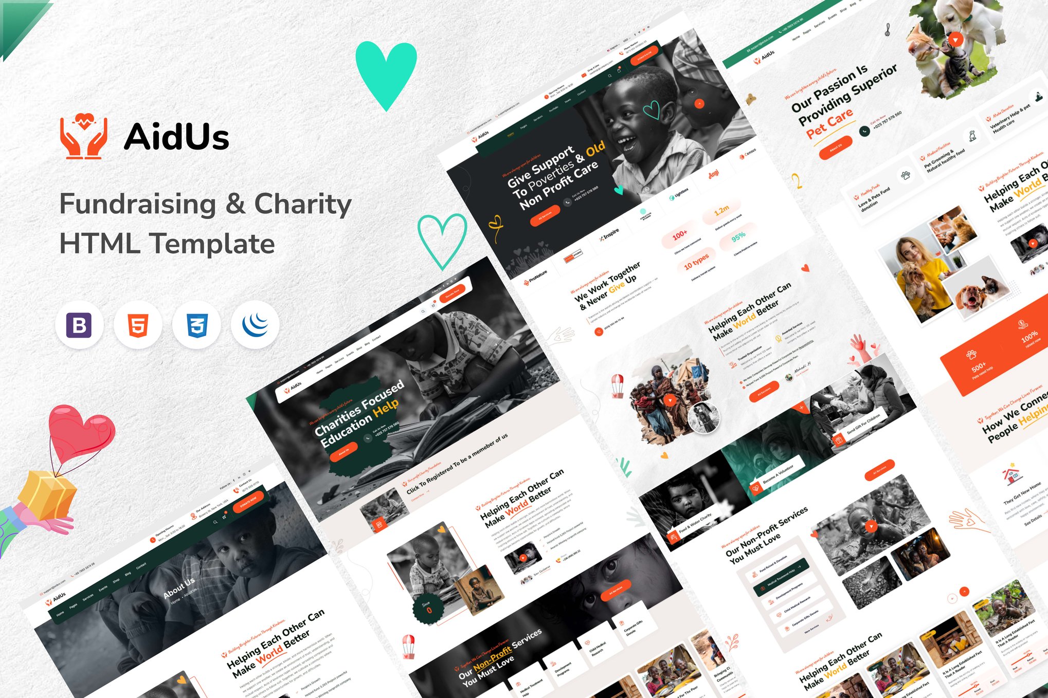 Introducing AidUs – Charity Nonprofit HTML5 Template, a versatile solution for nonprofit organizations dedicated to making a positive impact on society. With a modern and elegant design, this template offers features such as team profiles, project showcases, and blog sections. Built on Bootstrap 5, AidUs is optimized for performance and responsiveness, making it suitable for various content management systems. Enjoy the benefits of SEO-friendly coding, fast loading times, CSS3 animations, and more, all backed by friendly customer support for a seamless customization experience.