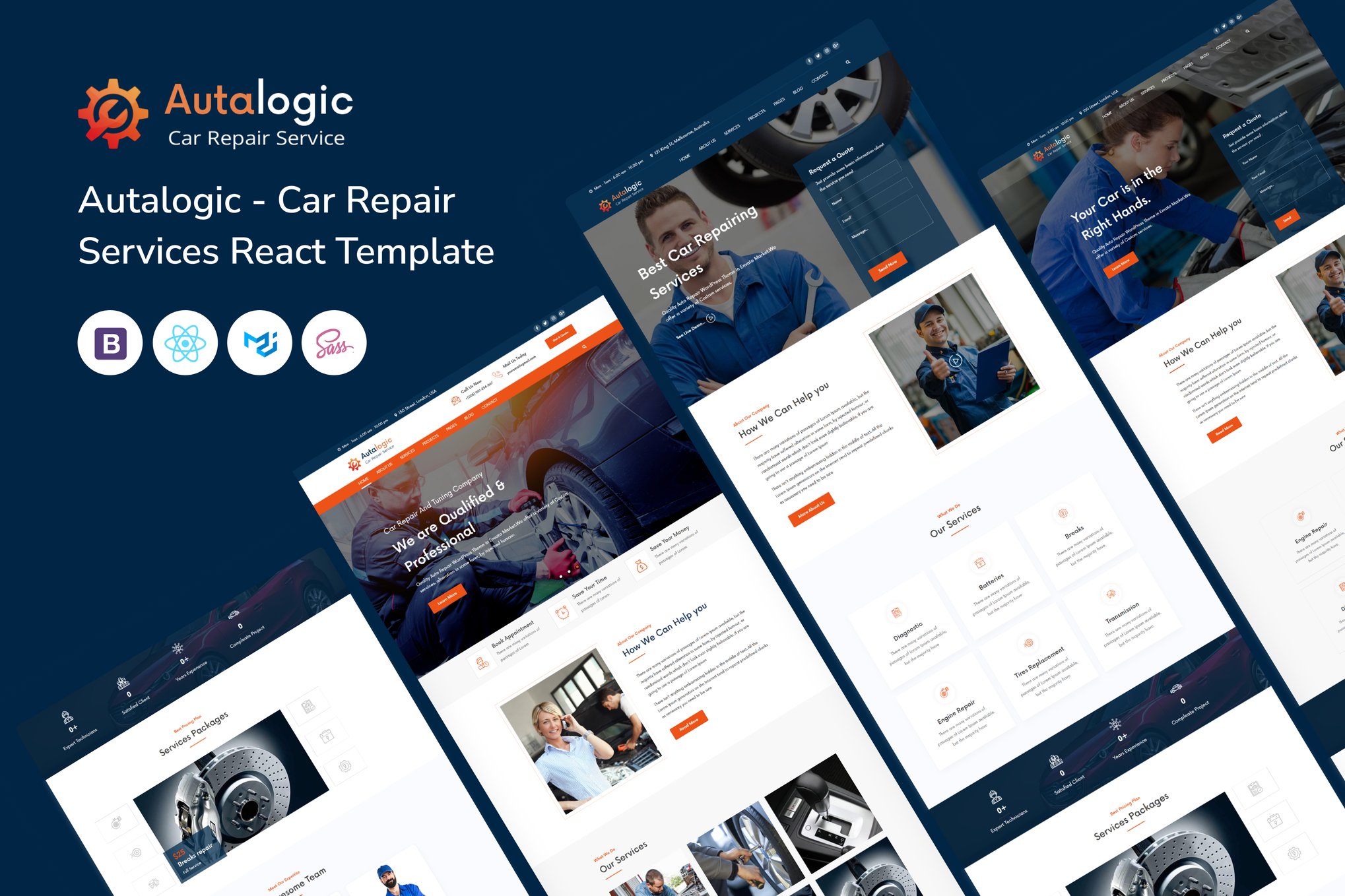 Download Autalogic – a cutting-edge Car Repair Services React Template designed for the modern auto business. Built on Reactstrap and Pure React js without jQuery, Autalogic is the ultimate solution for Auto Mechanics, Car Repair Shops, and more. Whether you offer car wash services, maintenance, or auto inspections, Autalogic is your go-to template. Easy to customize, developer-friendly, and fully responsive, this template comes packed with features like a responsive navigation menu, form validation, and more than 20 pages. Get your auto business online with Autalogic today!