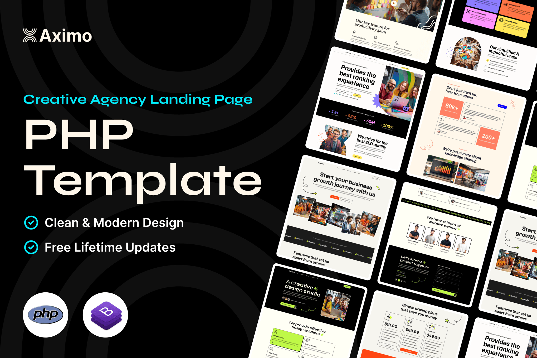 Aximo is a versatile Creative Agency PHP Template suitable for Digital Agencies, SEO Agencies, Corporate Agencies, and similar businesses. Ideal for those starting a Digital Agency, Software Business, Startup, or Agency website as well as Business Websites. With a responsive design tested on all major browsers and devices, the template leverages the power of PHP for dynamic web content creation. Built on Bootstrap 5 Framework, it features 4 Home Page layouts, W3 Valid HTML Files, well-documented instructions, and a host of additional features including social links, clean code, advanced typography, and more. With a modern and clean design, Aximo offers the flexibility and functionality needed for a professional online presence.