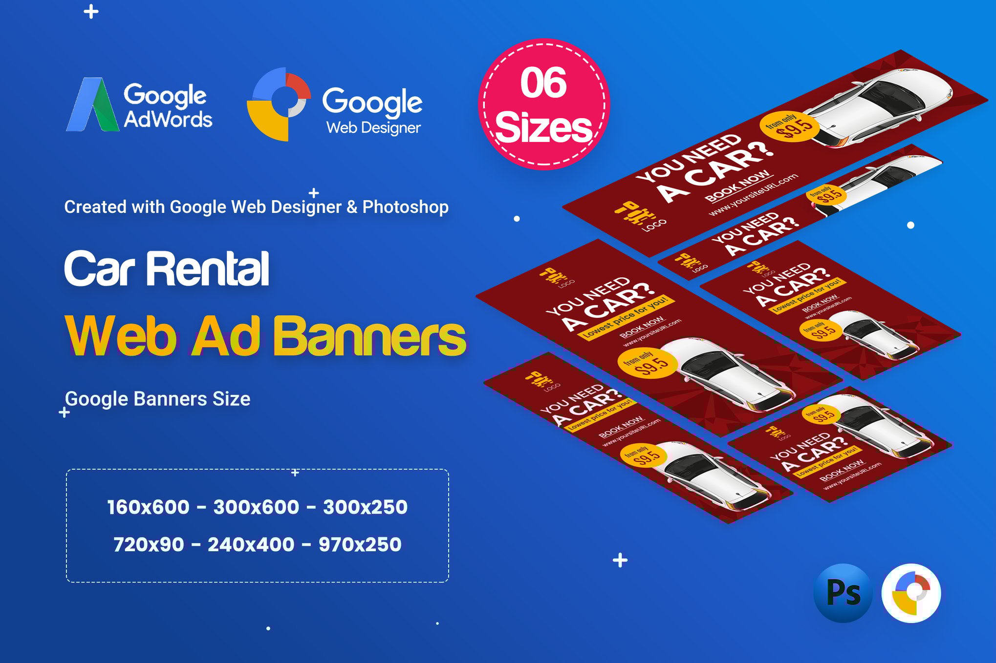 Introducing the Car Rental HTML5 Banners AdPSD Template, a clean and uniquely designed set perfect for promoting rental services. This collection features 6 HTML5 templates and 6 PSD files crafted with the latest material design trends. Tailored for introducing companies and car rental promotions, these banners are fully customizable, allowing for easy edits to colors and text. Enhance your marketing efforts with these professionally designed banners.