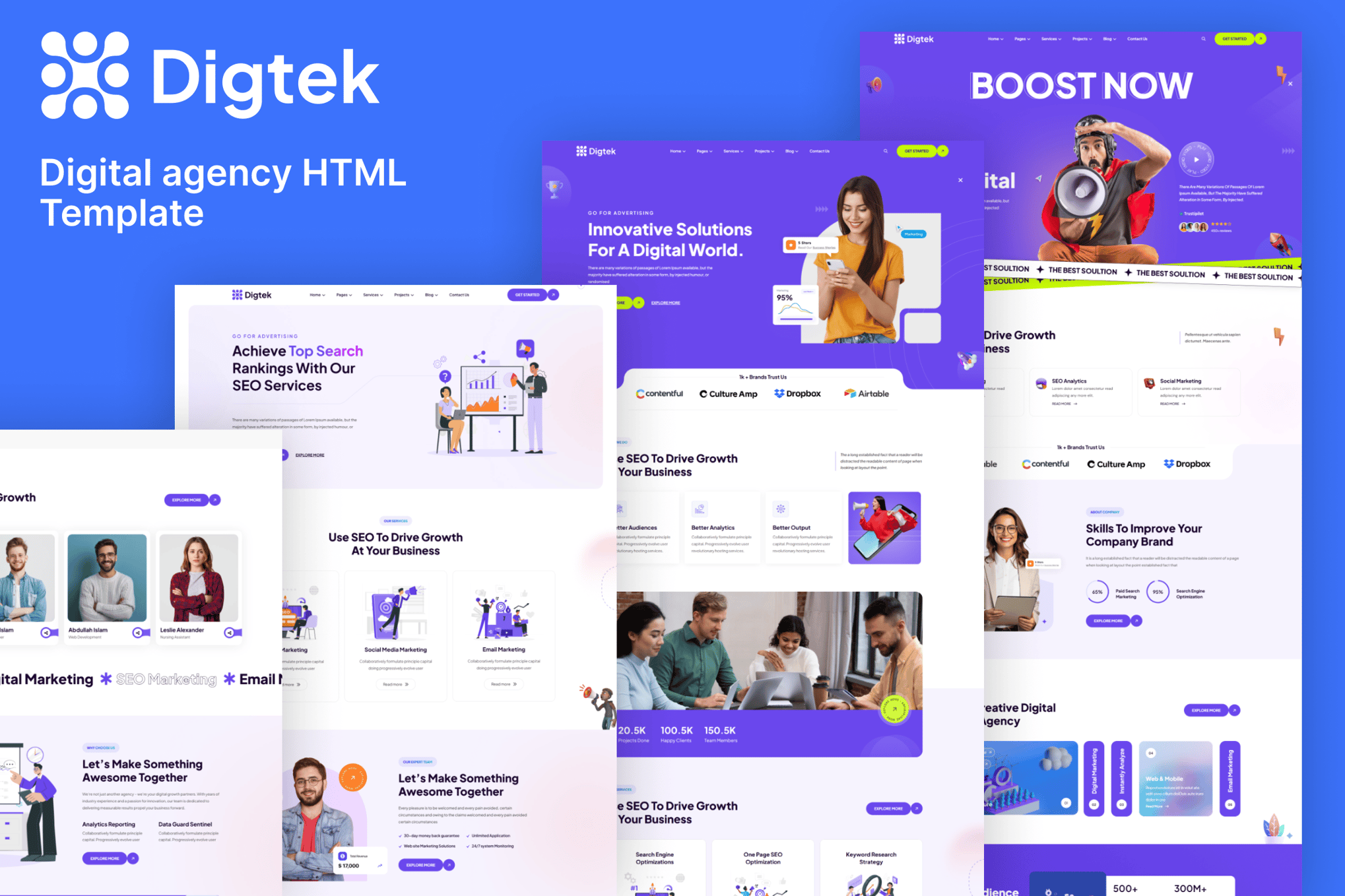 Elevate your digital marketing strategy with Digtek, a premium HTML template designed for SEO agencies and startups. With three unique home page versions and a sleek, responsive design, Digtek ensures a captivating user experience across all devices. Featuring clean code, CSS animations, and easy customization, this template is a must-have for those seeking a modern and professional online presence. Take your website to the next level with Digtek and enjoy dedicated 24/7 support for a seamless experience.