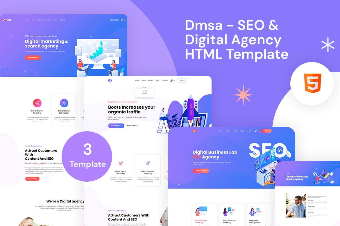 The DMSA SEO Digital Agency HTML Template is a sleek and professional website template designed for digital marketing and SEO agencies. It features a modern and clean design with a focus on user experience and conversion optimization. With its responsive layout, the template ensures a seamless browsing experience on all devices. The template includes various sections for services, case studies, team members, and more, making it easy for agencies to showcase their expertise and attract potential clients. Overall, this template is a great choice for agencies looking to establish a strong online presence and generate leads effectively.