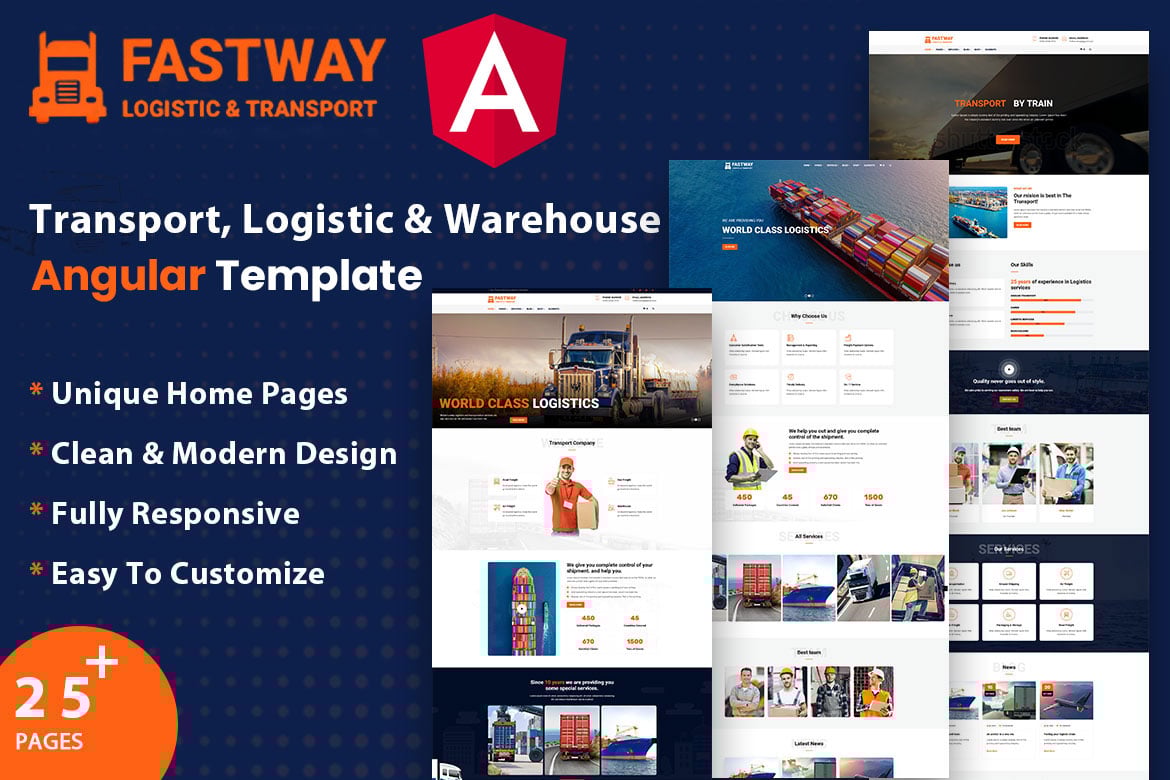 Introducing Fastway Transport, Logistic, and Warehouse Angular Template, an ideal solution for logistics, trucking, transportation companies, and freight businesses. Built using the latest website technology, Fastway ensures a seamless visual experience on both desktop and mobile devices. With a variety of modules, useful functions, and an appealing design, this template offers powerful flexibility for code customization. Benefit from features like multiple home pages, responsive layouts, unique slider effects, Google Fonts, Revolution Slider, and reliable support, making Fastway a comprehensive and adaptable choice for your website needs. Note: Images shown in the demo are for illustrative purposes only and are not included in the download package.