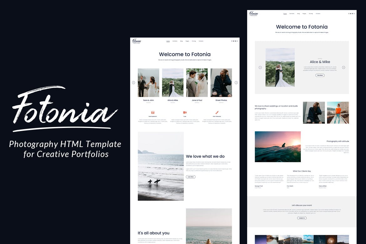 Introducing Fotonia, a dynamic photography HTML template designed for creatives seeking a sleek and contemporary online presence. With 8 unique homepage layouts, 7 gallery styles, and essential pages like contact, about, pricing, and blog, Fotonia offers a versatile platform to showcase portfolios. Boasting a responsive design that ensures seamless display on various devices, this template is ideal for any creative portfolio website. Explore the live preview to witness its features including multiple header styles, diverse gallery pages, cross-browser compatibility, optimized search engine performance, and a working Ajax contact form for enhanced user engagement. Elevate your online portfolio with Fotonia’s blend of style and functionality.