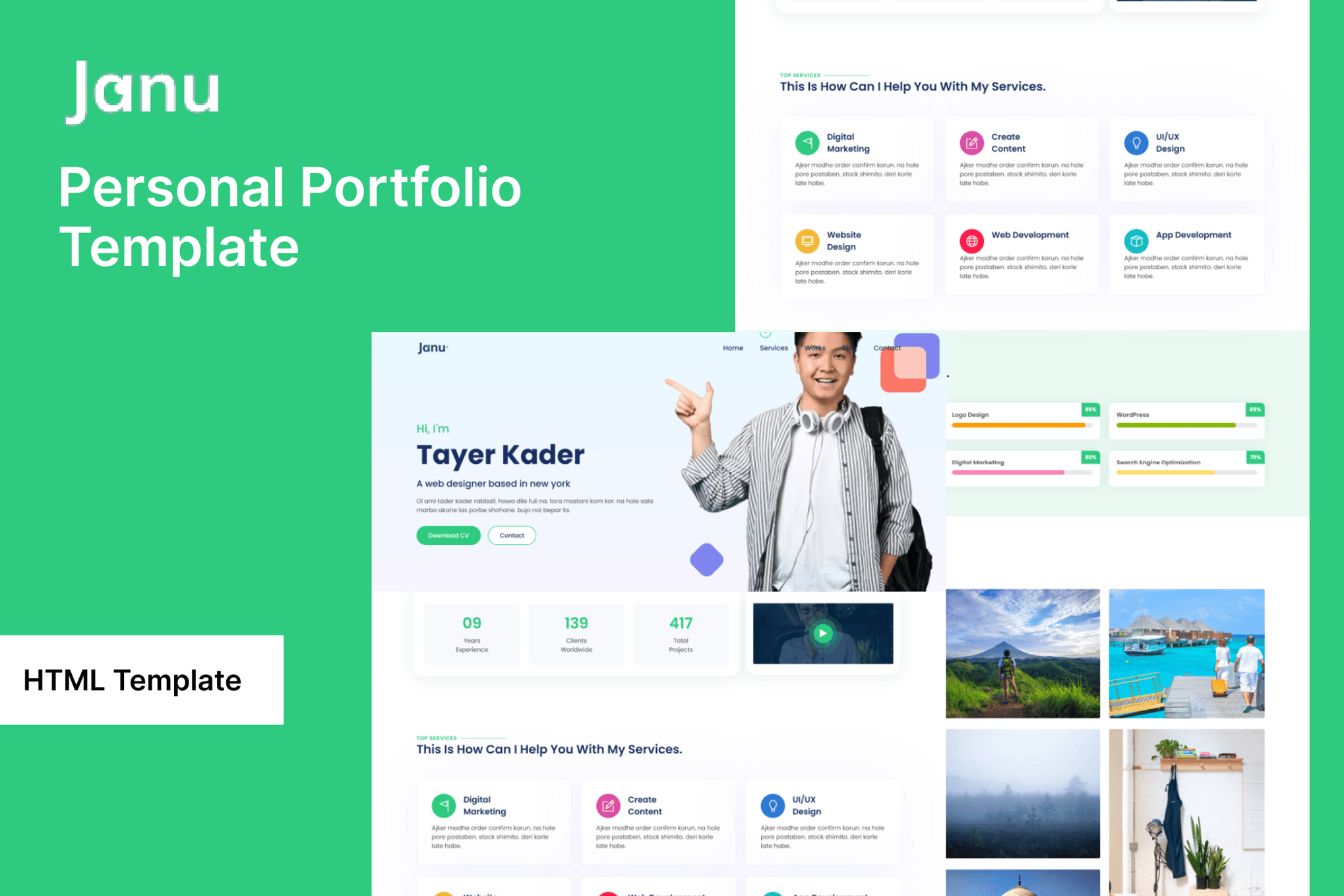 Presenting Janu, a responsive personal portfolio HTML template designed for a range of creative professionals. Ideal for showcasing work in fields such as agency services, architecture, photography, music, art, web design, and more. This template features a clean and modern design, built with Bootstrap for a seamless user experience. With full responsiveness, cross-browser compatibility, and SEO-friendly structure, Janu offers a professional platform to highlight your talents. Elevate your online presence with Janu and customize it to make it your own with ease.