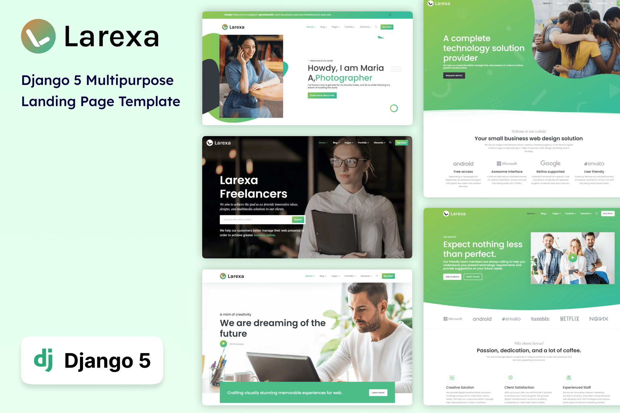 Introducing Larexa, a versatile Django template designed to meet various project needs. Perfect for businesses, corporate agencies, media houses, freelancers, or bloggers, Larexa offers a solid foundation for your website. Crafted with Django and Bootstrap 5, this template ensures fast performance, SEO optimization, and scalability. With its highly customizable features, efficient code, and extensive documentation, Larexa simplifies development tasks. Choose from multiple pre-designed pages and layouts to create a modern and developer-friendly website effortlessly. Take advantage of its flexibility and innovative design to elevate your online presence with Larexa today.