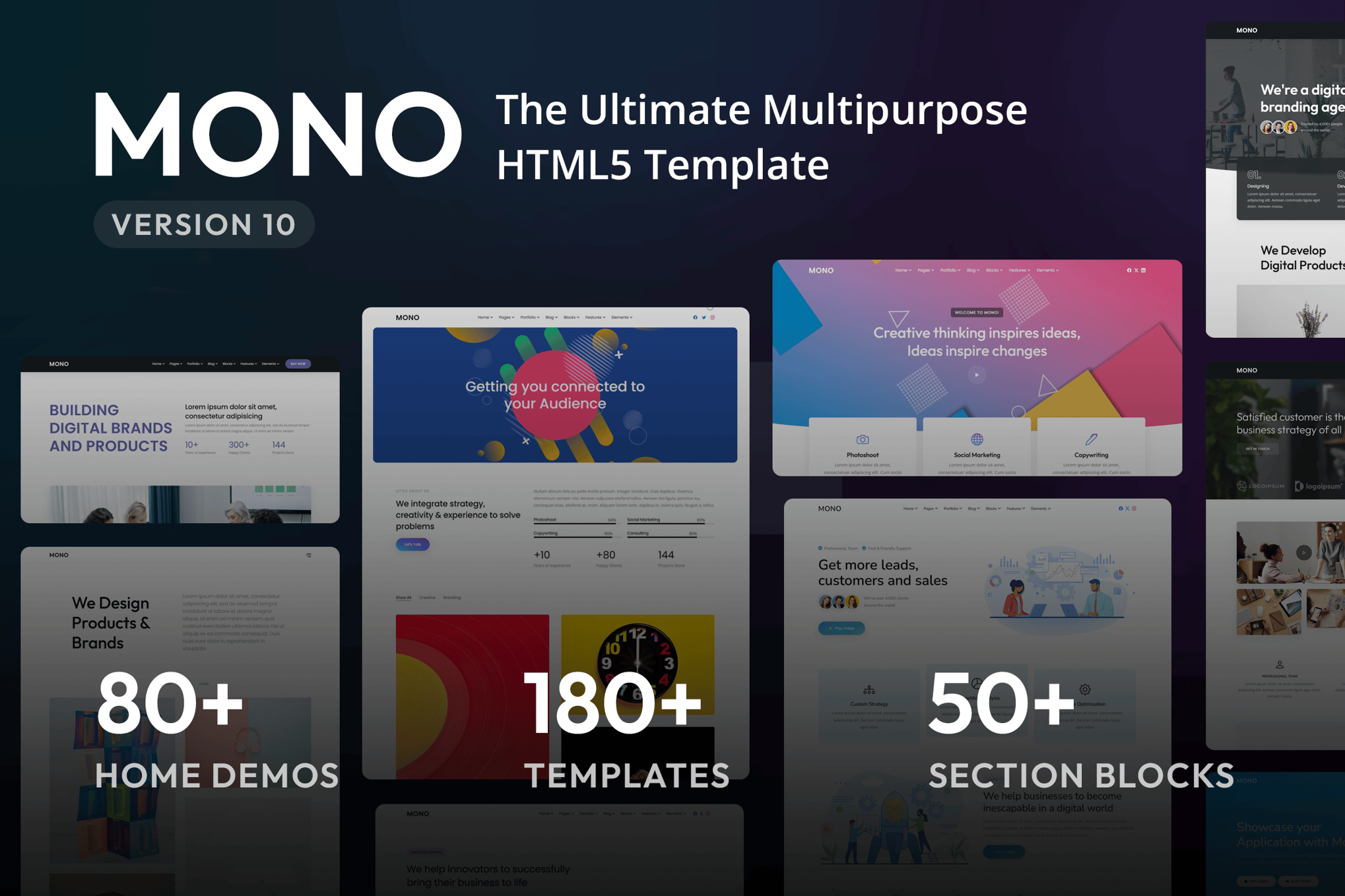 Elevate your online presence with Mono, a modern and fully responsive multipurpose HTML5 template designed by professionals. With a plethora of features and options, Mono is suitable for a wide range of website types, from creative agencies to restaurants and more. This versatile template boasts high performance, custom web elements, GDPR compliance, and a variety of layouts and color schemes to help you create a stunning website effortlessly. Explore Mono today and unlock endless possibilities for your online project.