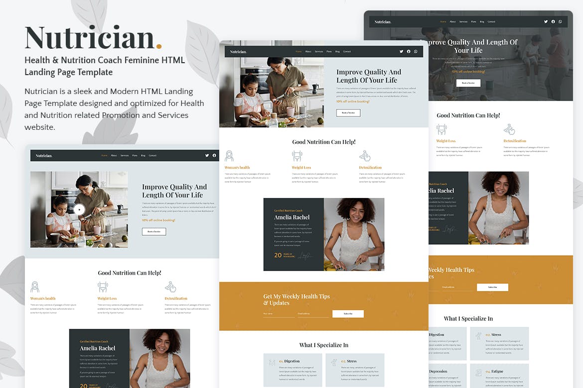 Nutrician is a beautifully designed landing page template that is perfect for health and nutrition coaches. With its clean and modern layout, it effectively showcases the coach’s expertise and services. The page includes clear call-to-action buttons, testimonials, and an easy-to-use contact form. Boost your business and create a professional online presence with Nutrician.