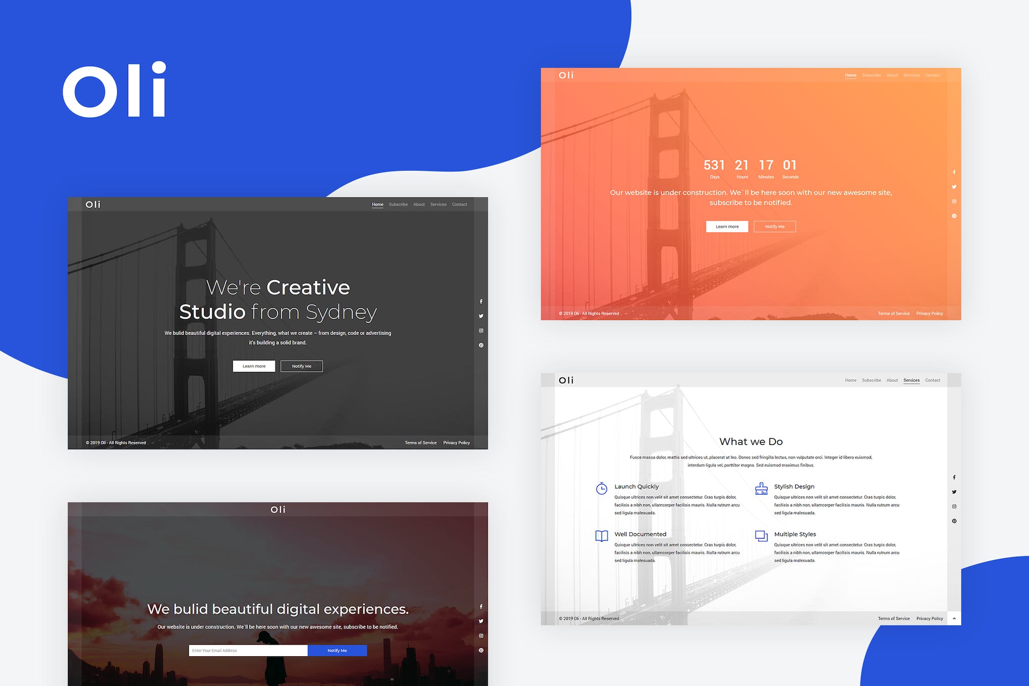 Oli – Responsive Coming Soon Template is a visually stunning and highly intuitive template that is perfect for creating anticipation around your upcoming project or website. With its sleek design and smooth animations, Oli captivates your audience and keeps them engaged until the big reveal. It is fully responsive and compatible with all modern browsers, ensuring a seamless experience for users across different devices.