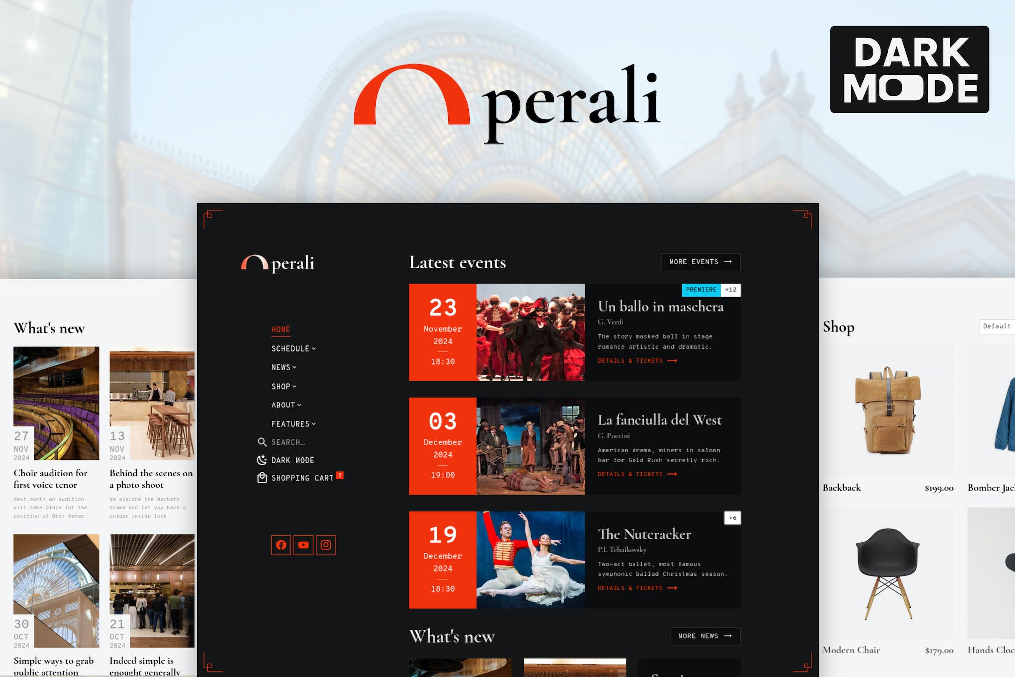 Introducing Operali, a complete Responsive HTML site template meticulously crafted for Opera Houses, Theatres, and Performing Arts websites. This template excels in performance optimization for quick loading, is mobile-first, and includes support for retina displays. Customize effortlessly with CSS variables, offering a swift implementation process. The design boasts a toggleable dark mode, along with features like a shop layout, sticky sidebar navigation, and quick search functionality. Impress your audience with Operali’s unique layout and clean lines, ensuring a memorable user experience on all devices.