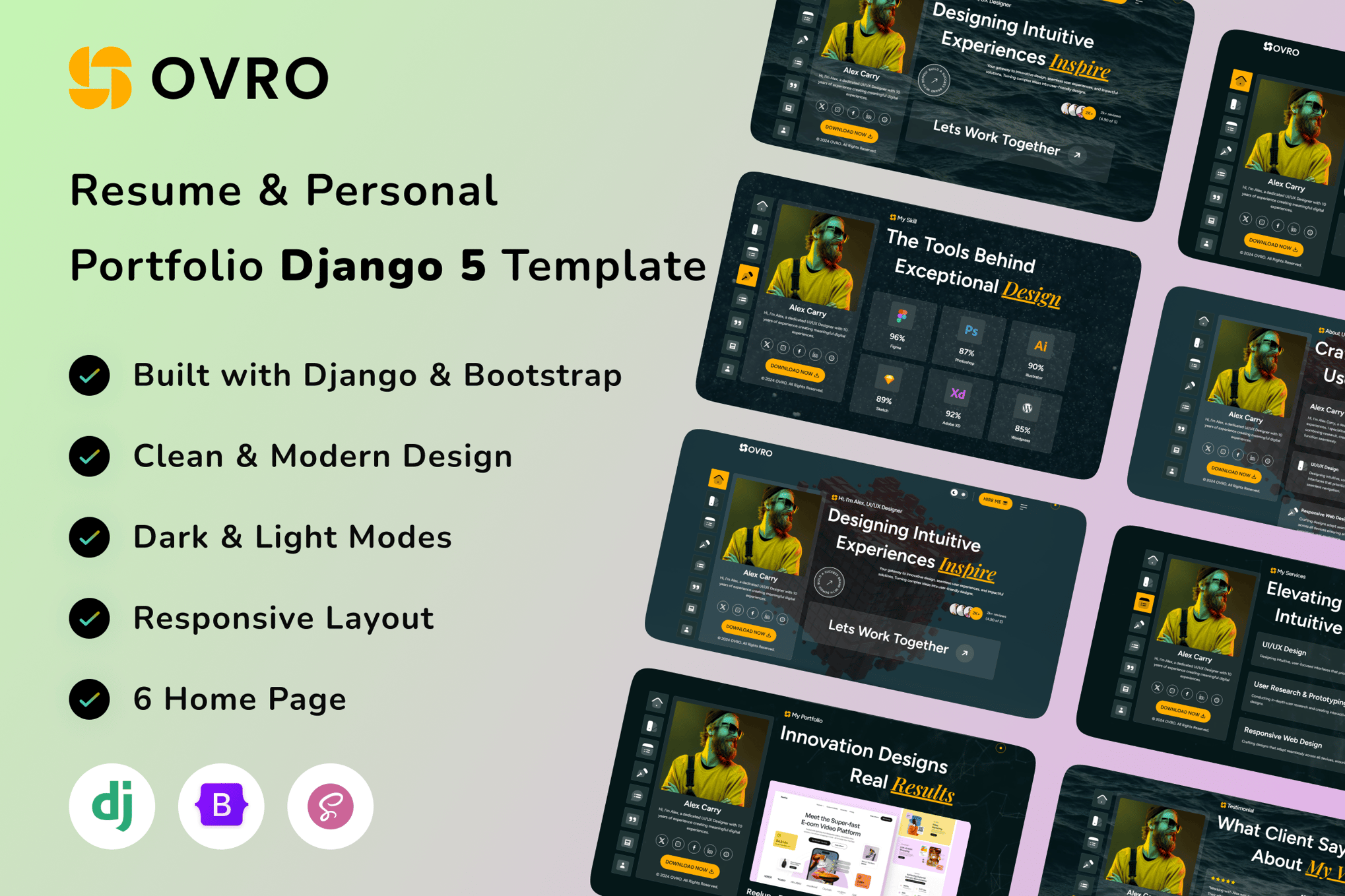 Experience the exceptional features of Ovro Template, a sleek and minimalistic Personal Portfolio designed for seamless usability. Incorporating stylish and contemporary subscription and contact forms, this template is not only visually appealing but also functionally modern. With its Bootstrap and Django 5 foundation, versatile design options, and 100% responsiveness, Ovro is the perfect choice for professionals in various fields seeking to create an impressive online portfolio or blog. Enhance your online presence with PICO’s well-documented structure, easy customization, and around-the-clock professional support for a hassle-free website-building experience.