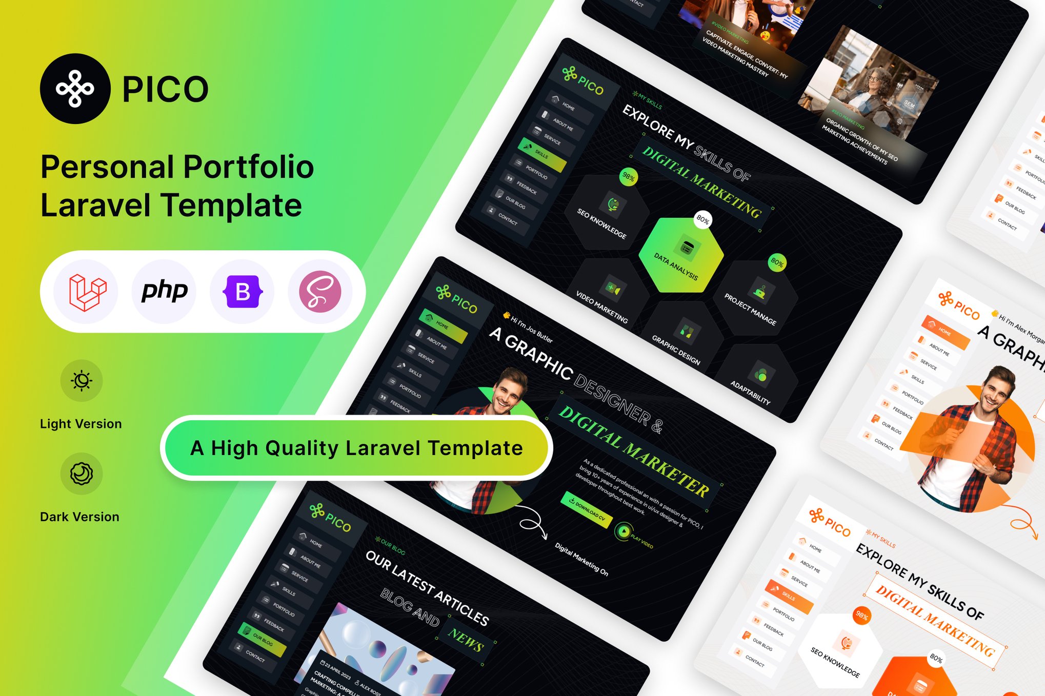 Introducing the PICO Template, a sleek Minimal Personal Portfolio Template crafted for effortless usability. Featuring stylish subscription and contact forms, PICO boasts a contemporary design optimized for seamless display across all devices. Ideal for professionals such as Designers, Developers, Freelancers, and more, PICO offers a hassle-free website-building experience with its well-commented code, extensive documentation, and responsive design. With features like RTL Support, Dark & Light demos, and easy customization, PICO is the perfect choice for creating a standout portfolio or blog.