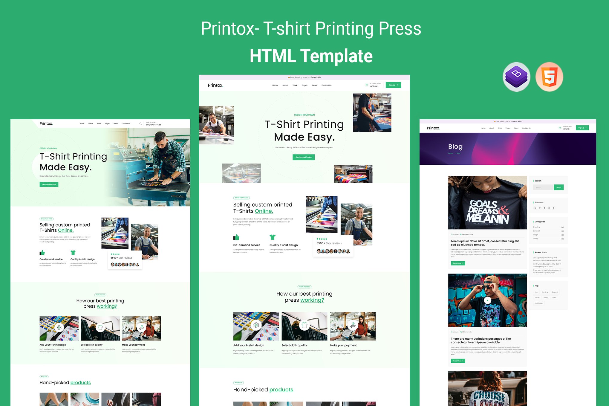 Printox – T-shirt Printing Press HTML Template is a well-crafted solution tailored to meet the needs of T-shirt printing businesses. With a modern design and robust functionality, Printox provides a professional online platform whether you are just starting out or already established in the industry. The template offers a seamless combination of design and usability, making it a versatile choice for various businesses in the printing sector.