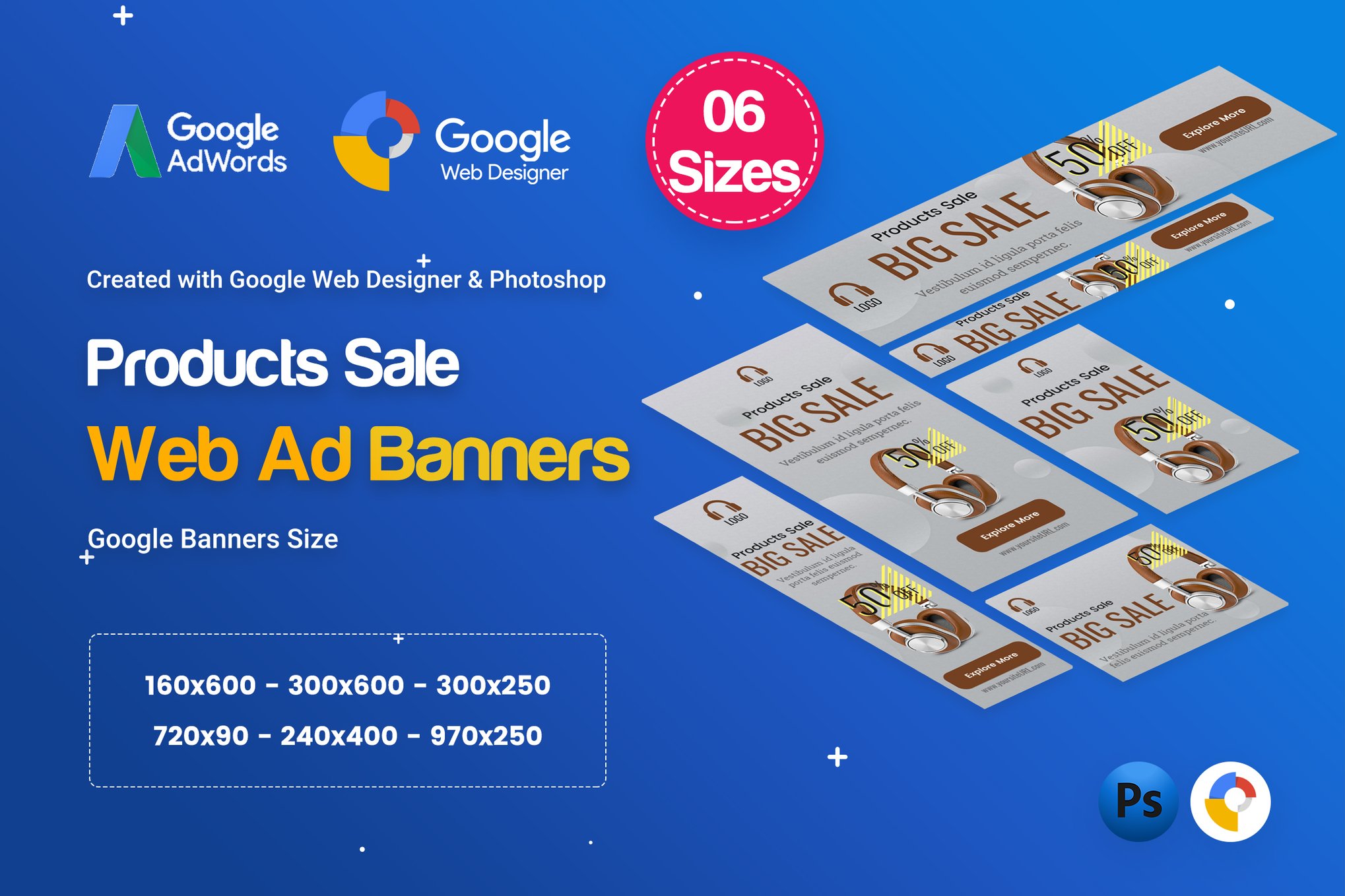 Elevate your marketing with our Products Sale Banners Ad PSD Template, featuring a sleek and contemporary design crafted using the latest material design trends. This set includes 6 meticulously designed PSD files perfect for online store introductions, promotions, sales events, and more. Utilize Google Ads sizes effortlessly, with layered files for easy customization of colors and text to suit your branding needs. Amplify your online presence and boost sales with these professional banners.