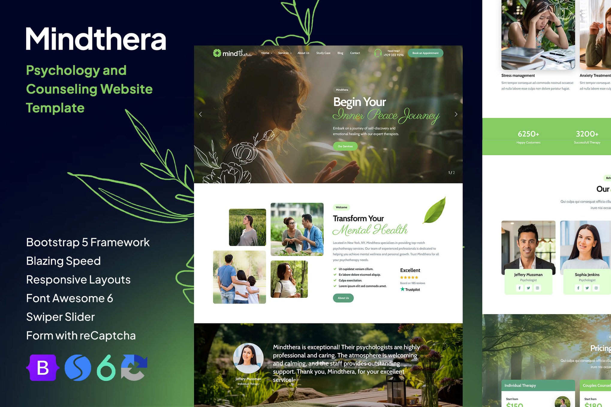 Mindthera is an exclusive website template designed for Psychology and Counseling professionals, featuring a professional design created by an experienced ThemeForest author. With stunning styles and elements, Mindthera enables you to build a polished website quickly and easily.