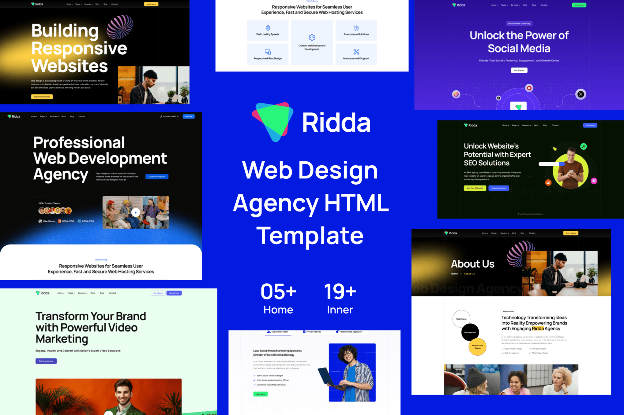 Introducing Ridda, a premium Web Design Company & Services HTML Template crafted for Web Design Agencies, digital studios, SEO firms, and startups. Featuring 10 unique homepage versions in both dark and light themes, this template offers 16+ meticulously designed blocks for easy customization. Built with Bootstrap 5 and including Sass, Ridda ensures a responsive, modern, and feature-rich design to establish your Web Design Agency or related business online effortlessly. Stand out with Ridda’s clean aesthetic, unique functionality, and seamless user experience.