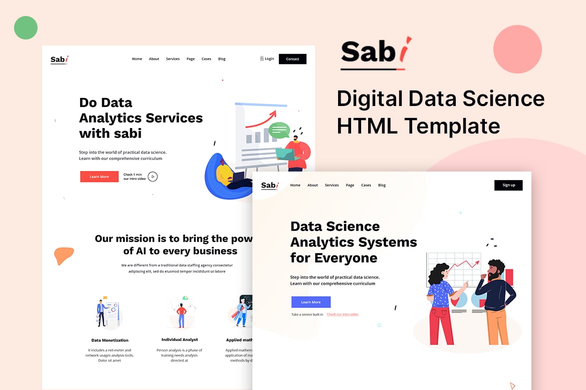 Introducing Sabi HTML, a professional data science analytics and data solutions design pack featuring 13 HTML pages suitable for various technology-related businesses. This template is ideal for data science analytics agencies, software startups, data migration services, data visualization services, and more. With features like OwlCarousel Slider, Bootstrap 5.x framework, SEO-optimized code, and cross-browser compatibility, Sabi HTML is easily customizable and fully responsive. Get access to HTML files and comprehensive documentation for a seamless user experience.