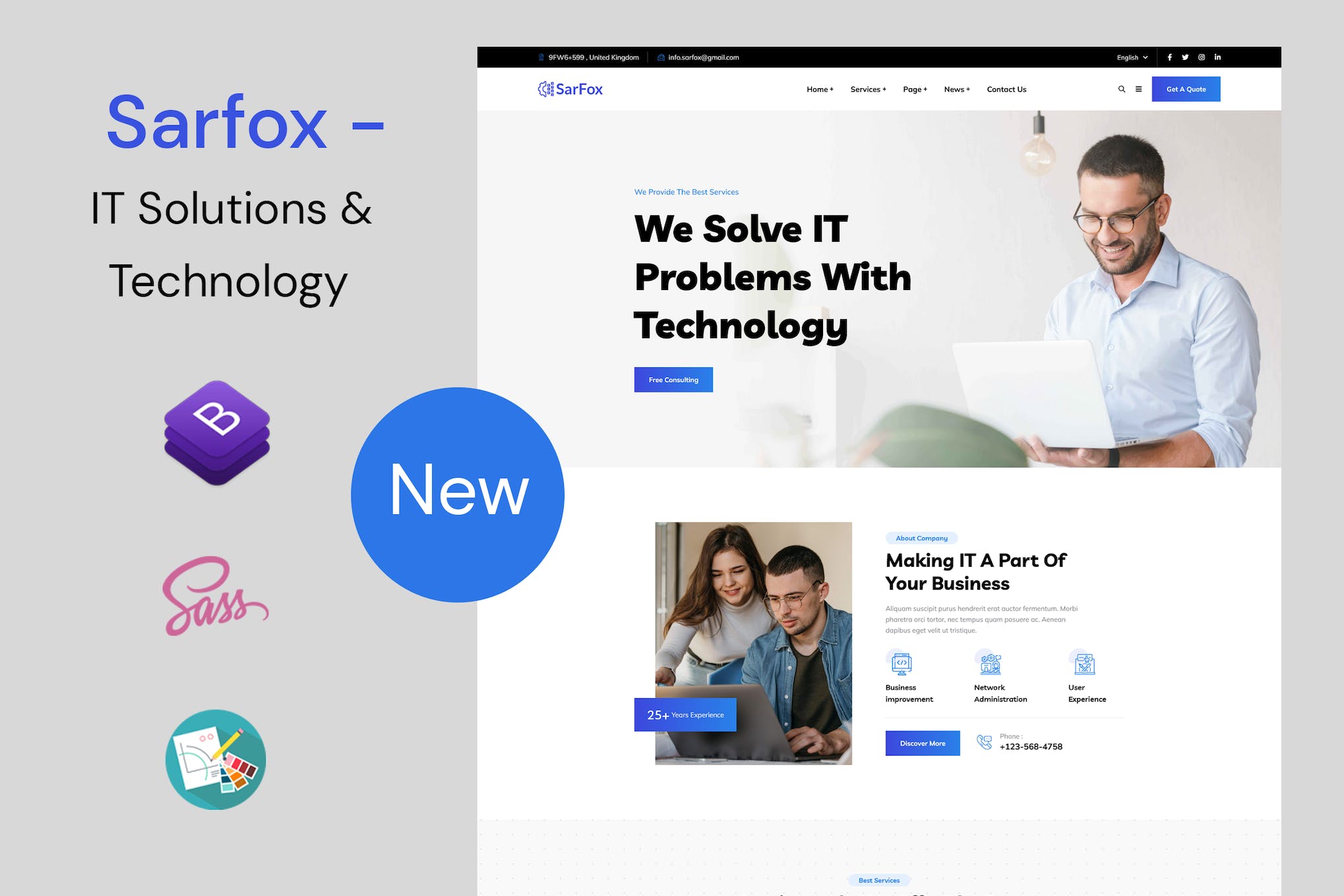 Introducing Sarfox – an HTML5 Template tailored for IT Solutions & Technology Services. This versatile template is suitable for any business, offering 10+ Creative HTML files for customization. The package includes a range of Inner Pages crafted with the latest Bootstrap 4 framework, boasting a sleek, modern design. With Free Google Fonts, Mobile Responsiveness, and W3C Code Validation, creating a professional online presence has never been easier. Experience seamless compatibility across browsers, and benefit from our 24/7 Support for a hassle-free web development journey.