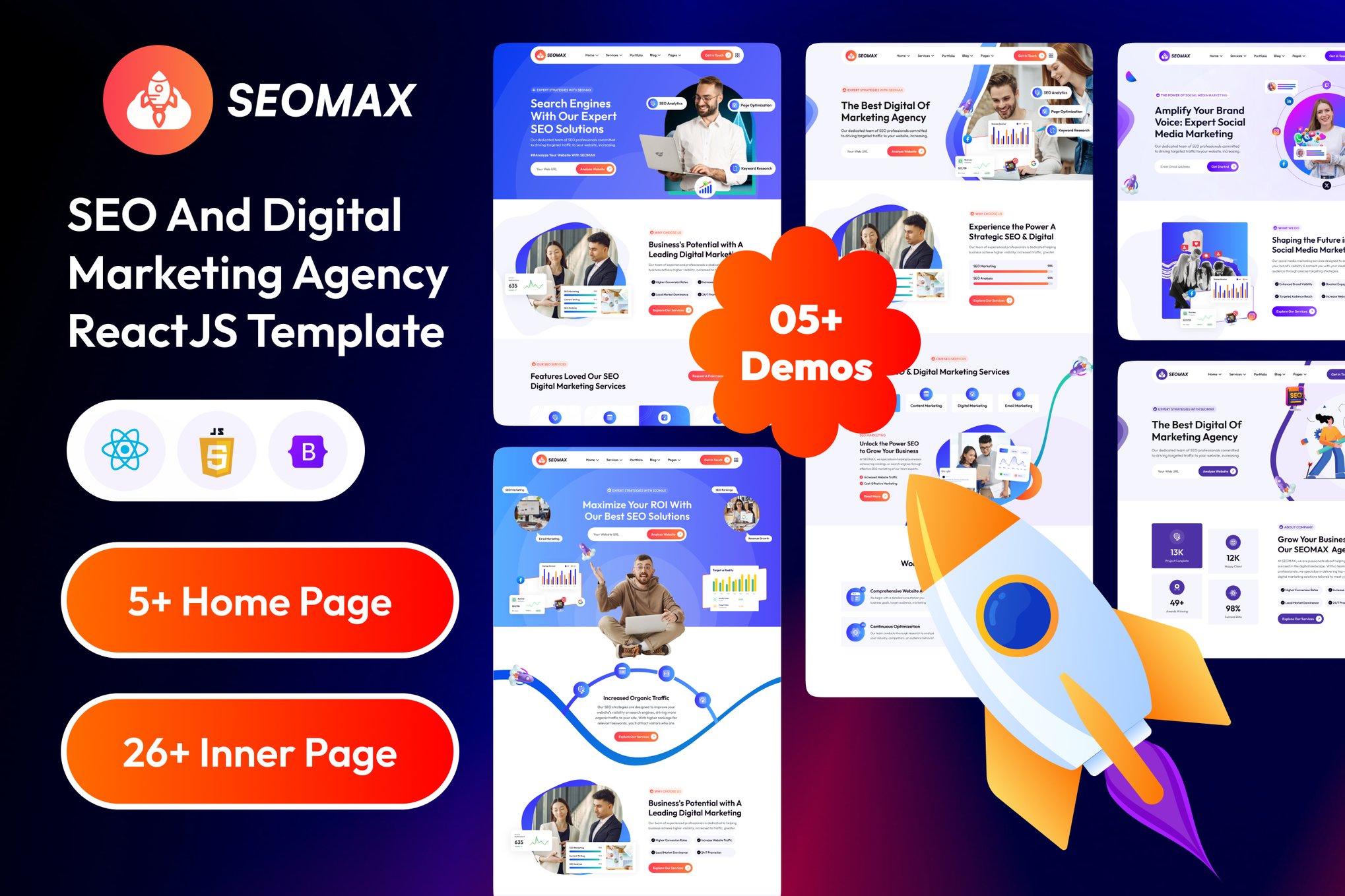 Elevate your digital marketing and SEO agency with SEOMAX – Digital Marketing & SEO Agency ReactJs Template. Boasting a modern and clean design, this template offers fast loading speed, full responsiveness, and customizable layouts to showcase your services effectively. Built on the React platform without jQuery dependency, it includes 12+ unique inner pages, smooth scrolling effects, and two pre-built website designs for a seamless online experience. With 24/7 customer support and free updates, SEOMAX is the ideal choice to create a professional and engaging website that drives customer conversion.
