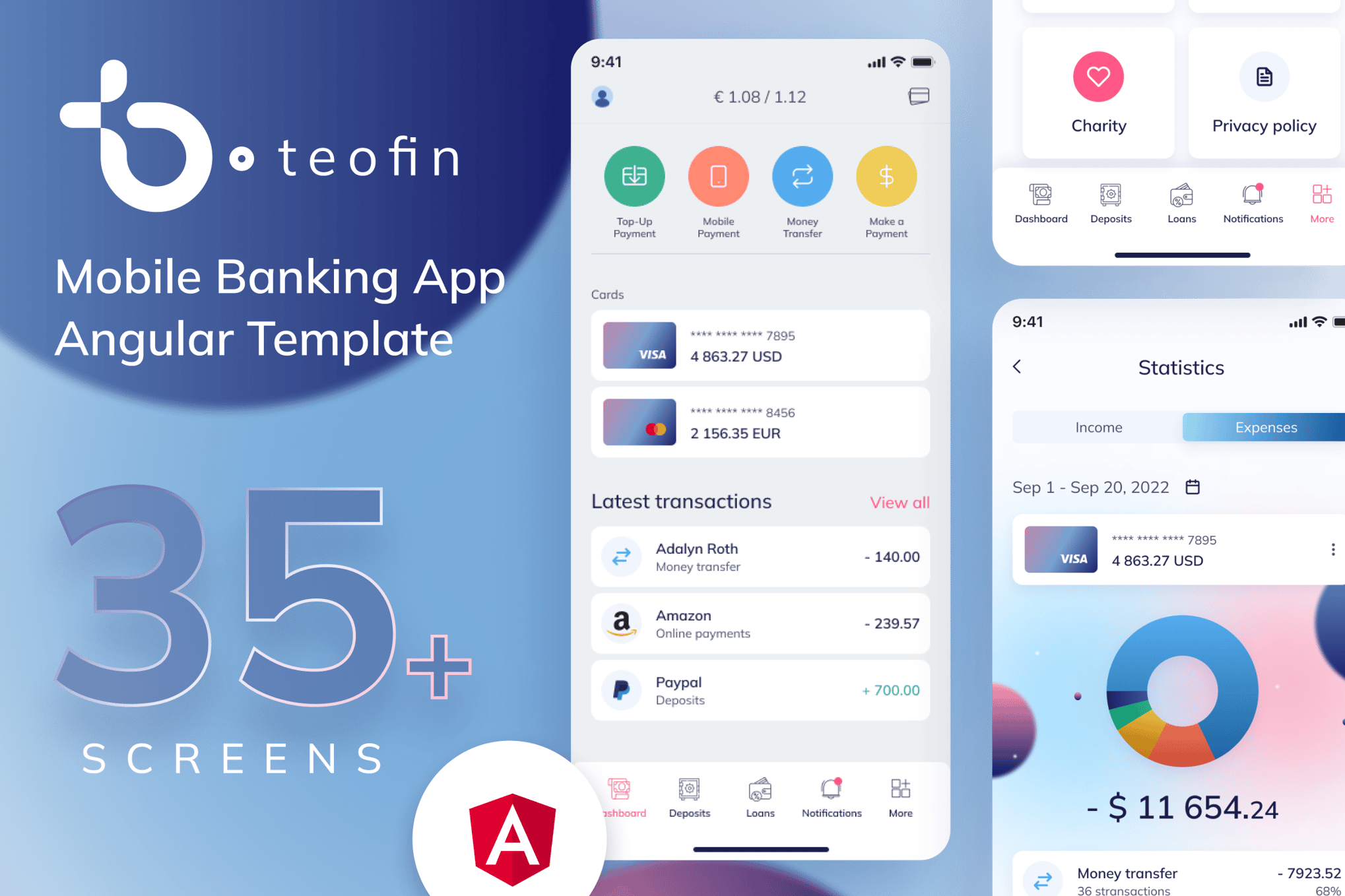 Introducing Teofin, a cutting-edge online banking app template crafted with Angular. This Progressive Web App offers a versatile experience on both web and mobile platforms, empowering users to effortlessly handle financial tasks like account management, money transfers, beneficiary additions, statement viewing, profile administration, and beyond. Teofin serves as an ideal cornerstone for innovative digital banking solutions, ensuring a streamlined and efficient banking experience for all users.