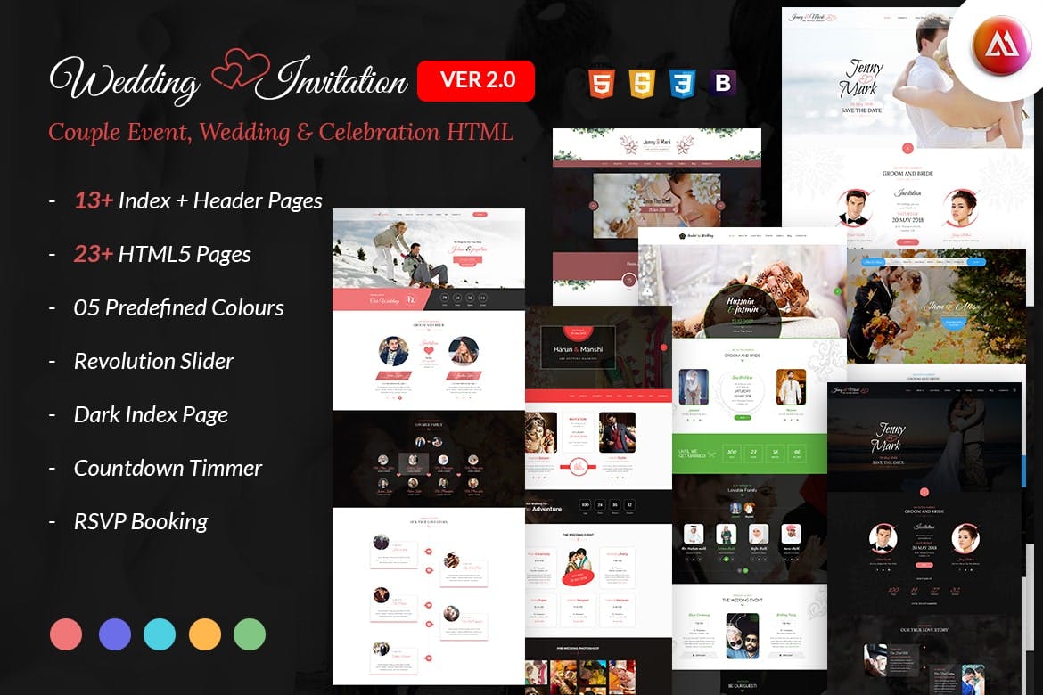 This wedding event invitation HTML template is a beautiful and elegant option to create stunning invitations for weddings or other special events. With a modern and stylish design, it provides a perfect canvas to showcase important details and convey the theme of the event effectively. The template offers customization options, making it easy to personalize with couples’ names, event date, venue details, and more. Its responsive layout ensures a seamless viewing experience on various devices, while the HTML format allows for easy integration with websites or email platforms. Overall, this template is a versatile and attractive choice for those looking to create memorable event invitations.