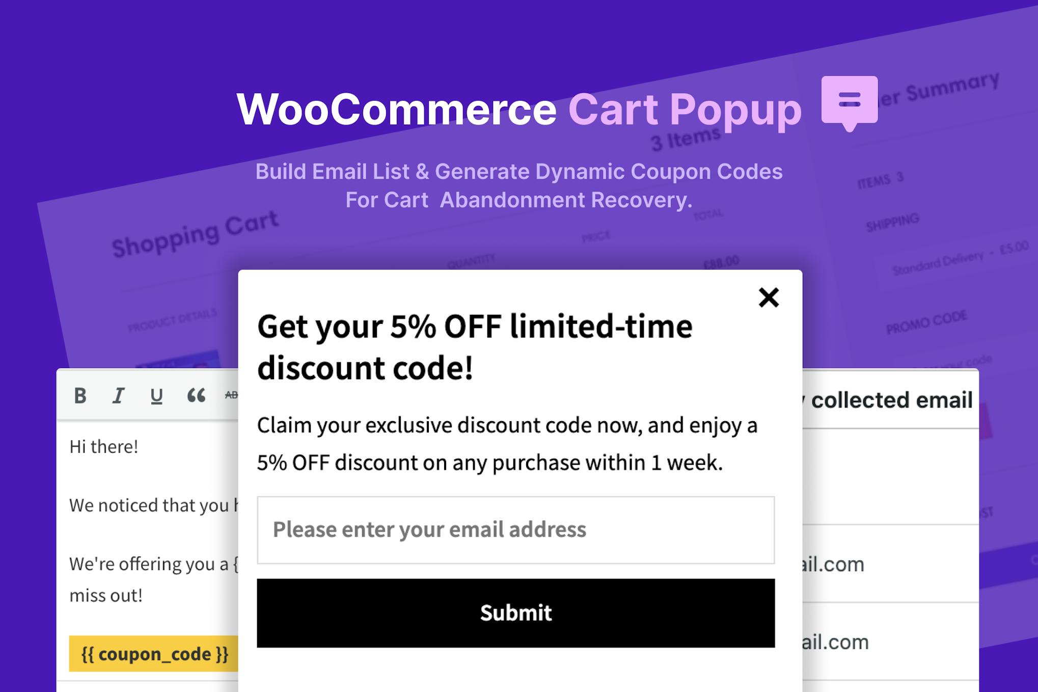 The WooCommerce Cart Popup plugin offers a convenient solution for merchants to set up exclusive discount codes and engage with users through a popup. By triggering 3 events, it encourages users to provide their email in exchange for a limited-time coupon code, effectively expanding the email list and decreasing cart abandonment. The plugin dynamically generates unique coupon codes based on set rules, promoting timely completion of checkout. Customizable popup and email content options cater to diverse marketing needs, enabling businesses to easily tailor their promotions. Furthermore, the ability to build an email list of potential buyers enhances not only immediate sales but also future marketing endeavors.