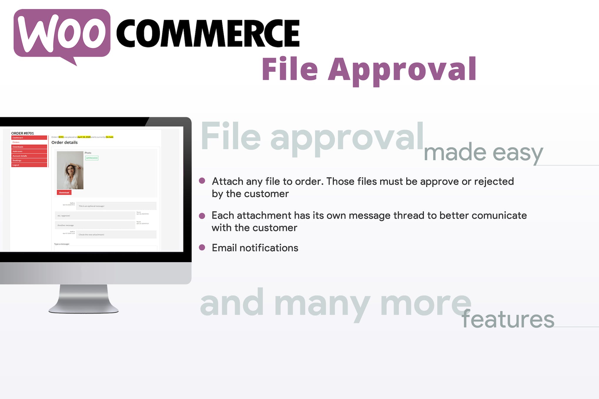 The WooCommerce File Approval plugin seamlessly integrates into your WooCommerce installation, allowing you to easily share files with your customers. With this plugin, you can attach files to orders and have them approved or rejected by the customer, while also providing the option for the customer to leave a message explaining their actions. The plugin features a user-friendly approval workflow and a visual thread style for attachment messages. Additionally, you can customize email notifications, highlight new content, maintain a clean server by automatically deleting associated files, and enjoy compatibility with the WPML translation plugin.