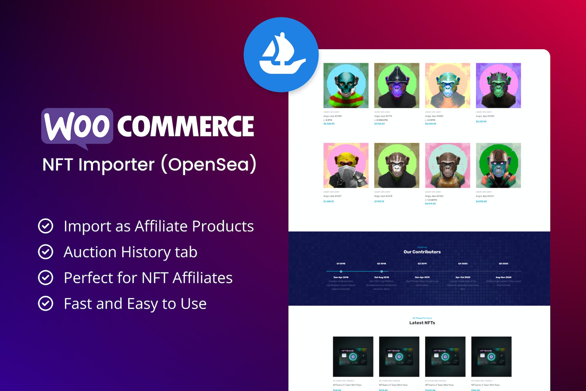 Introducing our feature-rich NFT Importer for WooCommerce. With this powerful tool, you can seamlessly import NFT listings from OpenSea, thanks to its integration with the OpenSea.io API. The plugin allows you to add NFT products to your WooCommerce store as affiliate or external items, while conveniently displaying the converted ETH price alongside the WooCommerce price on the shop page. Real-time fetching ensures that the NFT prices are always up to date. The plugin also offers a range of customization options, including auction history, collection details, and external affiliate links, making it a perfect choice for NFT affiliates looking to earn commissions. Its easy installation and user-friendly interface, combined with extensive documentation and video tutorials, ensure a smooth experience. Don’t wait – build your NFT marketplace with iBid NFT Marketplace theme and unlock endless possibilities. Try our live demo today!