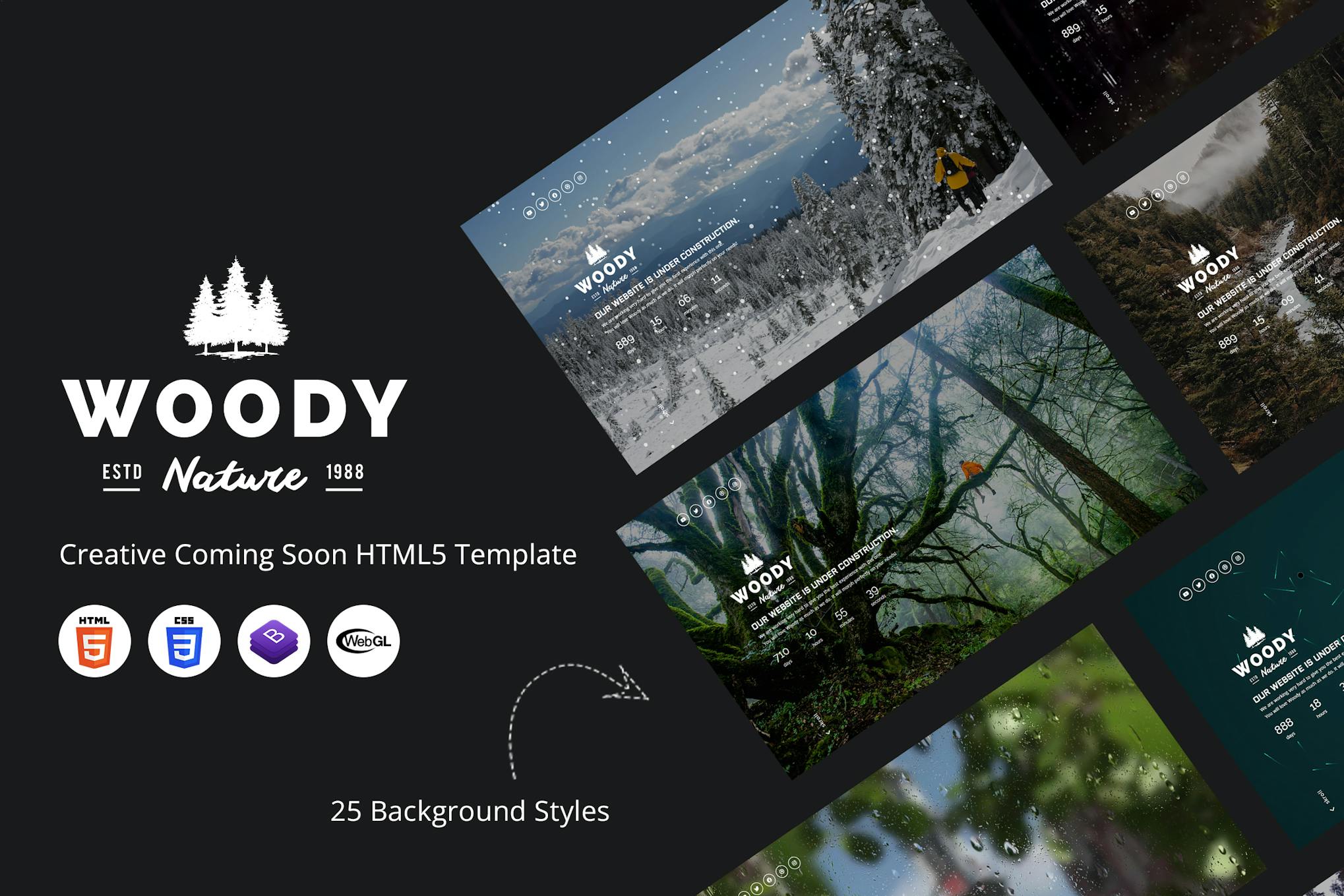 Introducing Woody, a sleek and professional business HTML5 template designed for a responsive coming soon page. With 25 customizable background styles to choose from, including image, slideshow, and animations like Rain and Low-poly, this template offers an array of options to make your site stand out. Boasting clean code, easy customization, and features such as AJAX subscription and working contact forms, Woody is a versatile solution for your upcoming project. Stay tuned for more exciting features to come!