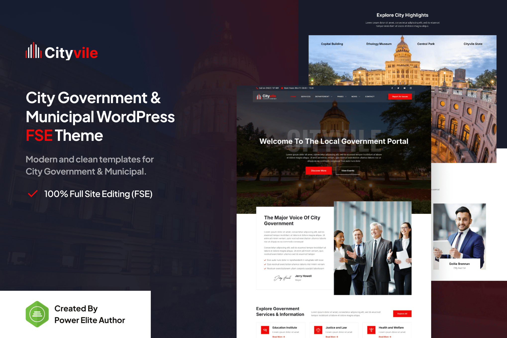 Introducing Cityvile, a modern and clean WordPress theme tailored for City Government & Municipal websites, government departments, and city portal sites. Compatible with the WordPress block editor, Cityvile makes customization a breeze, offering essential tools to showcase your business effectively. Benefit from full site editing capabilities, an impressive template library, lightning-speed performance optimization, and 100% SEO friendliness. With seamless responsive design and dedicated world-class support, Cityvile empowers you to create a visually striking, user-friendly website that enhances your online presence, credibility, and customer loyalty. Elevate your digital footprint with Cityvile and make a lasting impact on your visitors today.