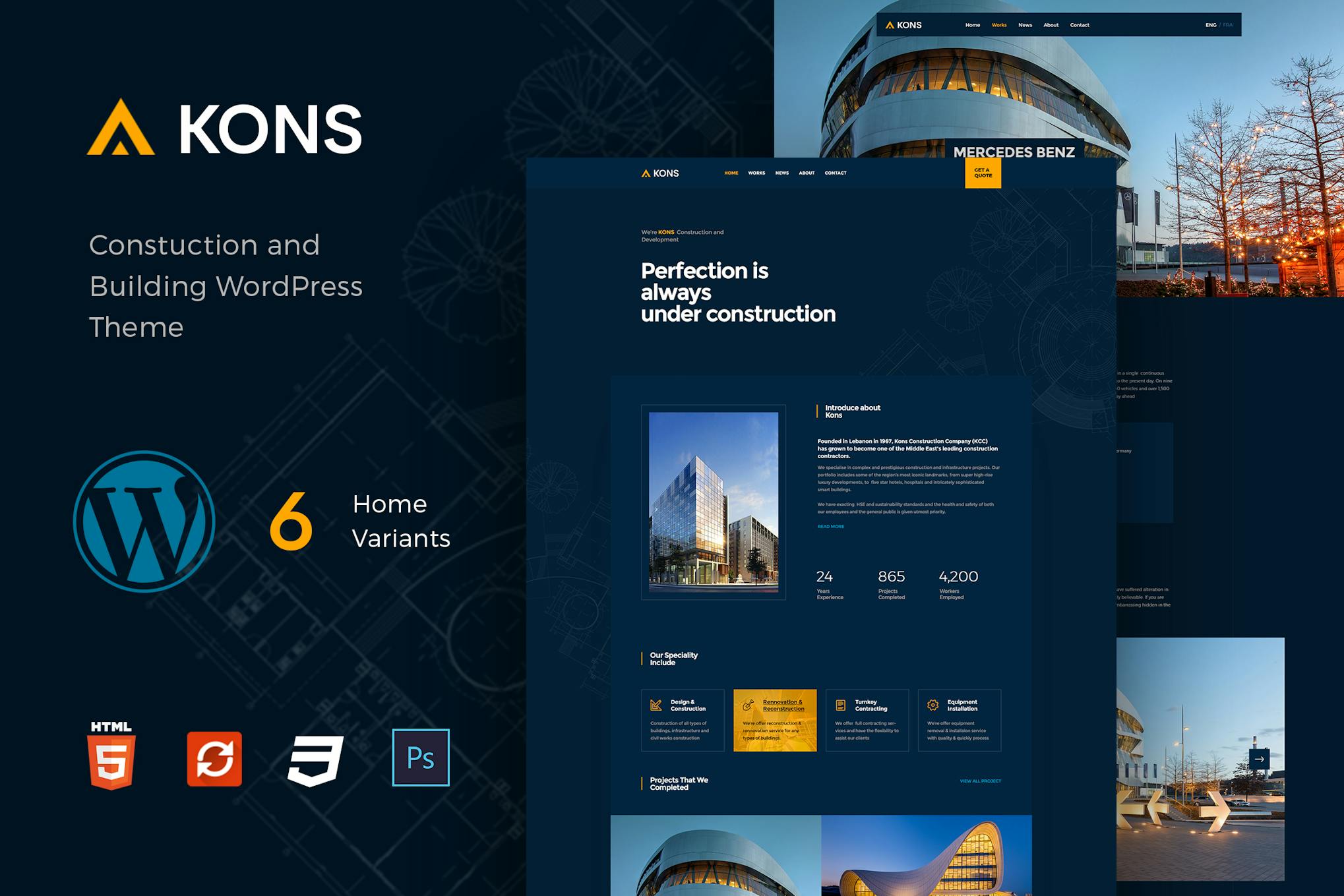 Kons is a modern WordPress theme tailored for construction and building companies. It offers both dark and light styles, along with a visual composer page builder for easy customization. This theme includes features like one-click demo import, SEO optimization, and a live color changer. You can showcase projects with custom post types and widgets, while enjoying the flexibility of moveable sidebars. Kons is retina-ready, responsive, and comes with detailed documentation and video tutorials for easy setup. With Google Fonts, Ajax contact form, and other extensions included, this theme provides comprehensive support and auto-update features.