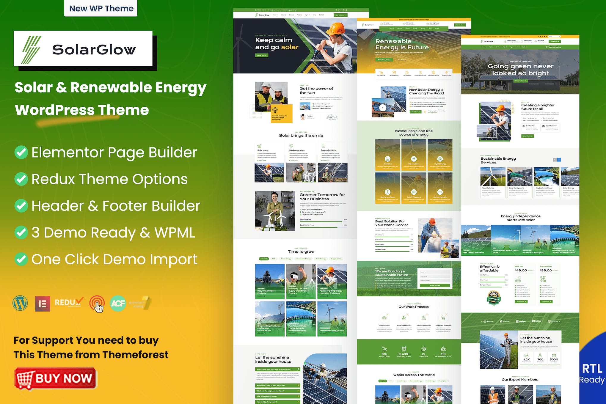 Solarglow is a flexible and modern WordPress theme built for solar and renewable energy businesses. It offers a range of user-friendly features, including customizable layouts that allow for easy branding, vibrant galleries to showcase projects and services, and seamless WooCommerce integration for e-commerce needs. Whether you’re starting a new solar panel company or looking to highlight renewable energy initiatives, Solarglow provides the ideal platform with its professional design and functionality. Perfect for eco-conscious brands, this theme helps promote a greener future online with style and ease.