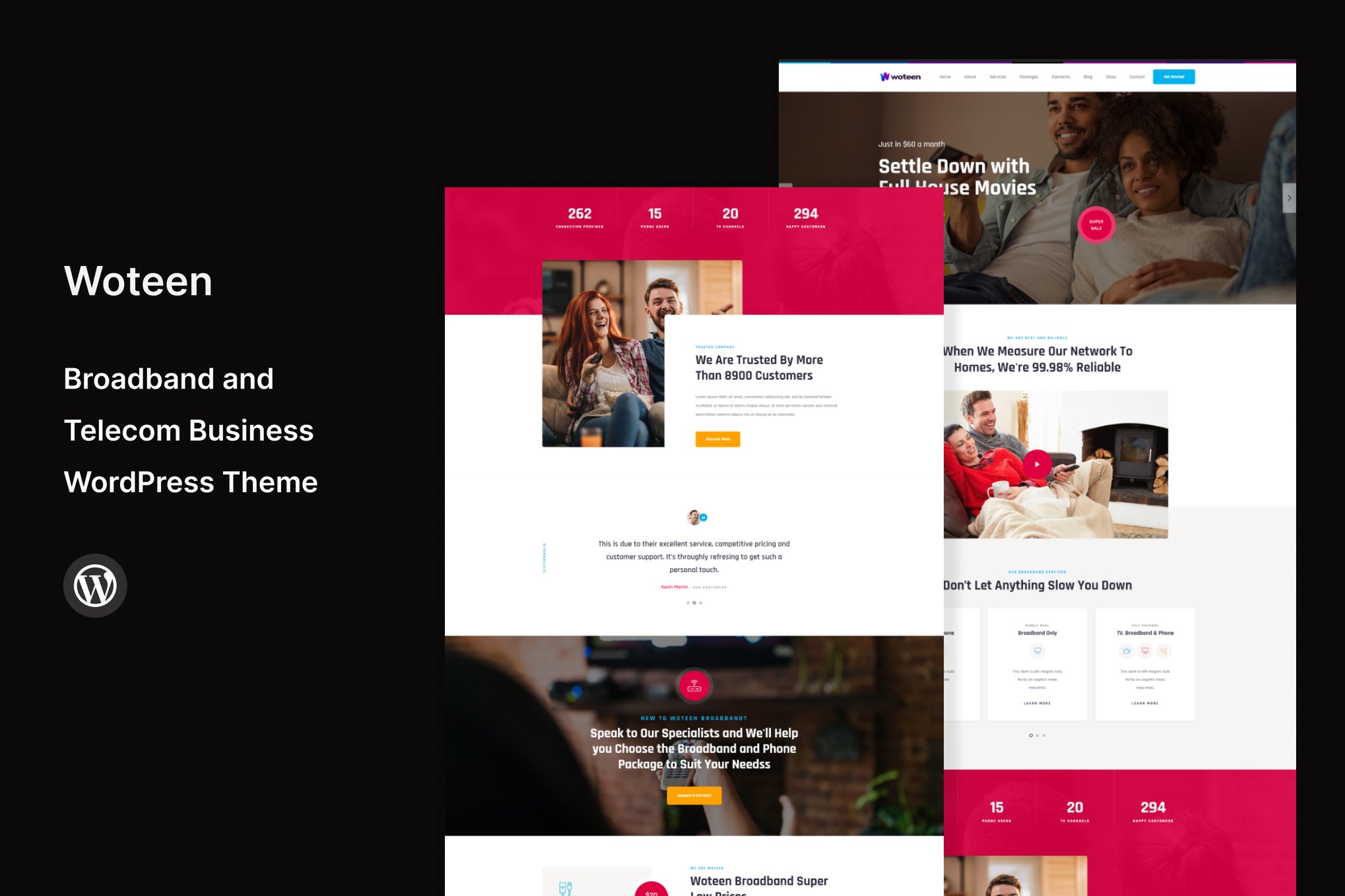 Introducing Woteen, the ultimate WordPress theme designed specifically for broadband, telecom, and all internet services. Perfect for telecommunication companies, broadband service providers, cable and TV service businesses, internet agencies, and individuals with broadband websites. Woteen boasts a range of features, including 100% fluid responsiveness, tested on real devices, flexible layout options, a flat, modern, and clean design, retina optimization, social link integration, clean and commented code, advanced typography, pixel-perfect design, and built on Bootstrap for added reliability. Elevate your online presence with Woteen today!