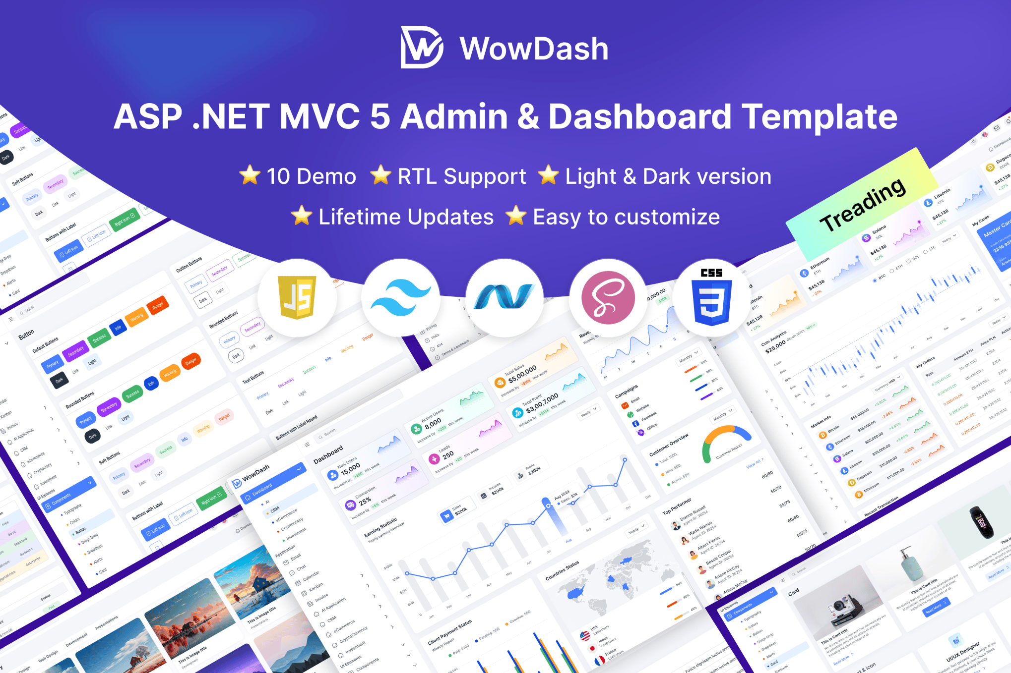 Introducing WowDash, a versatile ASP .NET MVC 5 admin dashboard template powered by Tailwind CSS. Designed for a multitude of web applications, from eCommerce to project management, WowDash offers a modern and responsive layout for a seamless user experience. With scalability in mind, this template provides extensive customization options to create dynamic dashboards effortlessly. From responsive design to advanced charts and graphs, WowDash is the ideal solution for developers seeking a professional and feature-rich admin dashboard template. Elevate your web applications with WowDash today and benefit from its clean design, comprehensive UI components, and regular updates backed by dedicated support.
