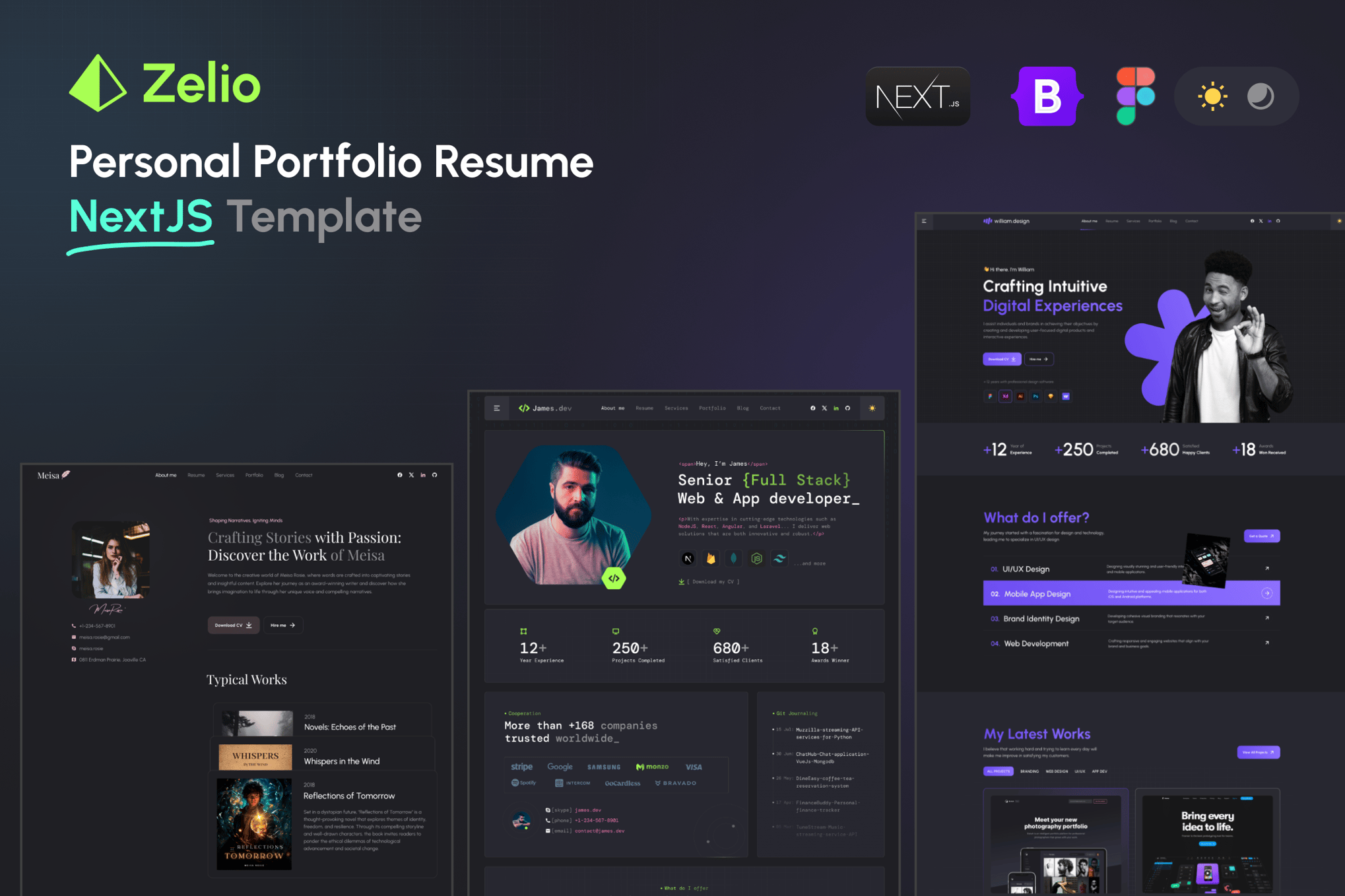 Zelio is a cutting-edge NextJS template designed for personal portfolios, ideal for freelancers, designers, artists, and creatives. With sleek design, fully responsive layouts, customizable sections, and pre-designed pages, Zelio makes it easy to showcase your work professionally. The template features layer styles for design flexibility, NextJS 14 and App router, dark/light mode, a Figma design file, detailed documentation, retina-ready display, cross-browser compatibility, free lifetime updates and user support, creative design, and W3C validated code. Purchase includes the NextJS template, Figma design file, and documentation. Note: This is a NextJS template, not a WordPress theme.
