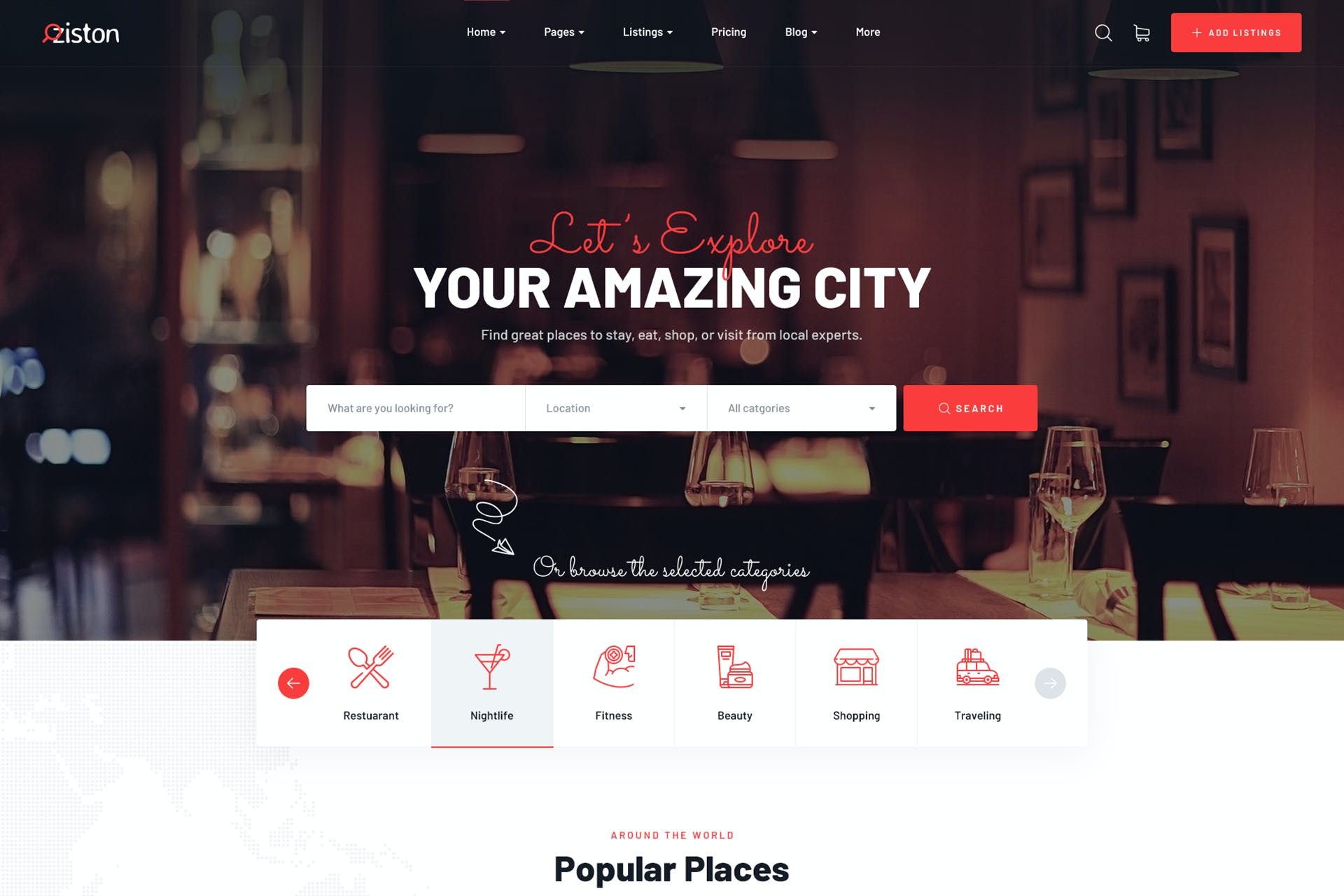 Ziston is a robust and user-friendly listing directory WordPress theme designed for businesses such as restaurants, cafes, museums, hotels, and more. With its easy-to-use features, venue owners can effortlessly add their places to the directory, while travelers can find suitable accommodations and entertainment options. This theme is fully optimized for mobile devices, offers seamless customization options, and integrates popular plugins like Elementor Page Builder and Slider Revolution. With its powerful features and extensive documentation, Ziston is the perfect solution for creating and monetizing a global directory site.