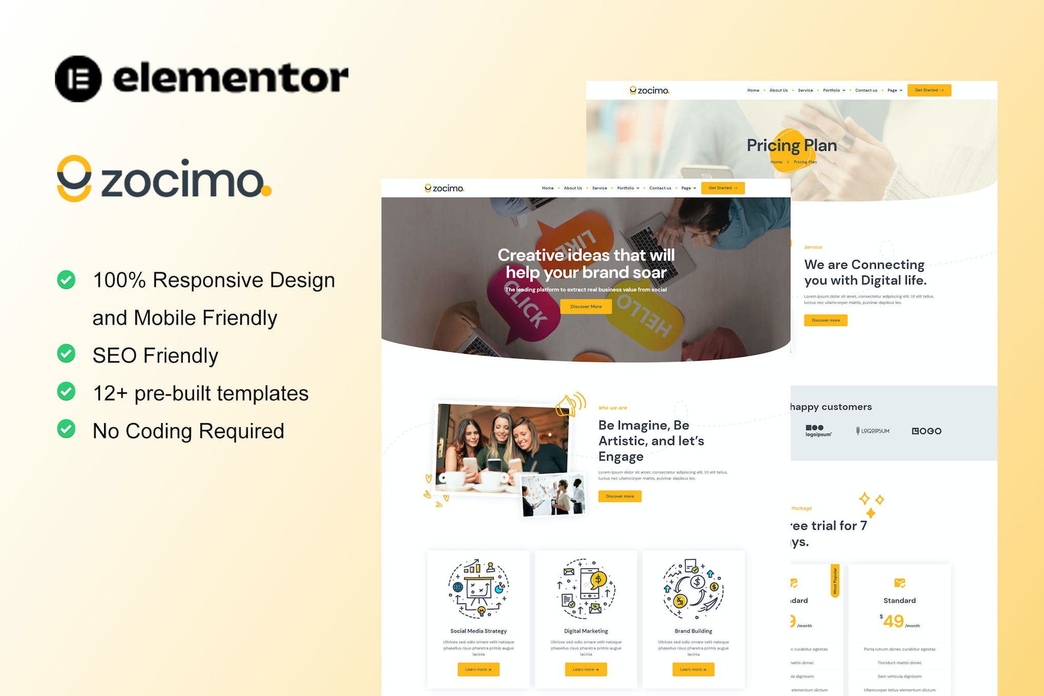 Introducing Zocimo, the ultimate Elementor Pro Template Kit designed specifically for Social Media Marketing & Creative Agencies. With its modern layout, cool design, and modern style, this template is perfect for any business related to digital marketing agencies and social media services. Whether you’re in SEO, advertising, or any other digital business, Zocimo is the ideal choice. With its 12+ pre-built templates, easy customization, and responsive design, this kit will give your website a professional and sleek look. Upgrade to Elementor Pro for additional templates and features.