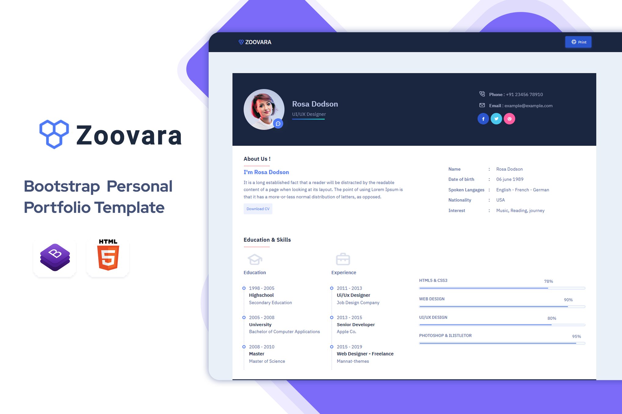 Download Zoovara: a sleek and innovative HTML5 one-page Template that doubles as a creative resume or business showcase. This fully responsive template adapts seamlessly to all devices, ensuring a polished presentation on desktops, tablets, and mobiles. Boasting a modern design with clean aesthetics, Zoovarais is equipped with Bootstrap 4, HTML5, CSS3, and jQuery to deliver a professional look. Its features include vertical and horizontal layouts, dark and light themes, RTL support, Google Webfonts, and W3C validated markup. With a working contact form and SASS support, Zoovara is your go-to solution for a standout digital presence.
